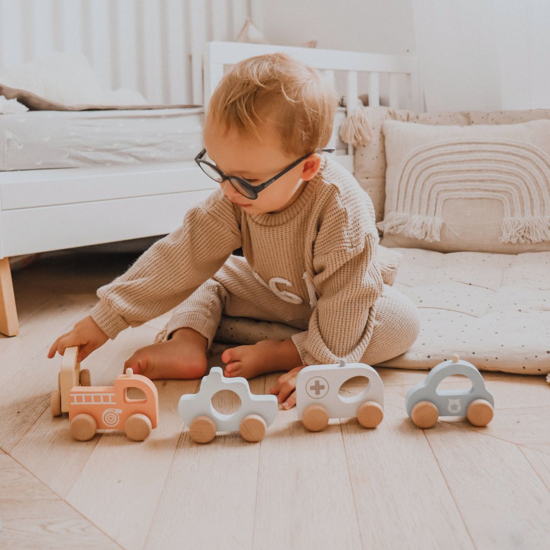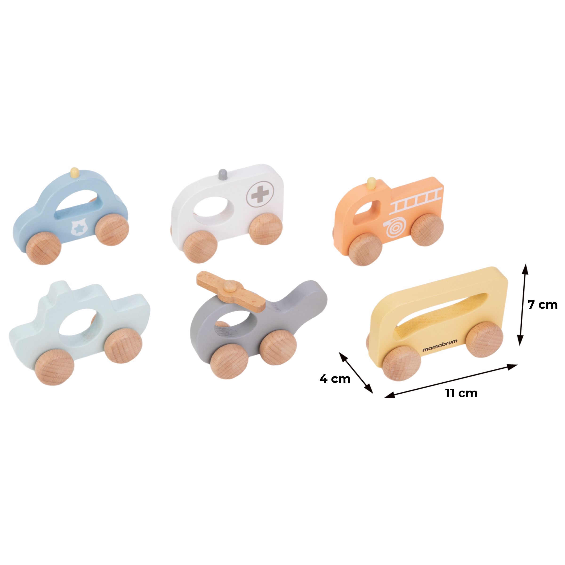 Ensemble de véhicules en bois pour bébésSi votre tout-petit est curieux de ce qui l'entoure et désireux de saisir les objets à sa portée, cet ensemble de véhicules en bois le ravira à coup sûr et répondra parfaitement à ses besoins. C'est un excellent choix pour les premiers jouets d'un enfant. La taille des véhicules, conçus avec le souci du détail, a été adaptée aux petites mains des enfants. Les couleurs douces et les formes arrondies favorisent leur sécurité.