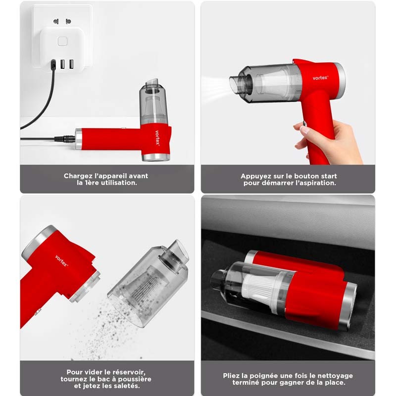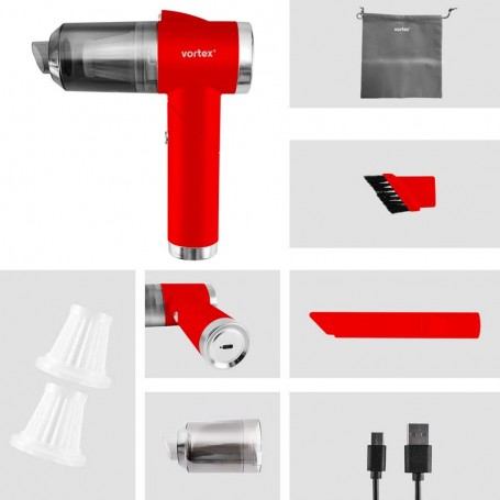 L'aspirateur à main sans fil CRC90_Red de Vortex est l’allié idéal pour nettoyer facilement les surfaces difficiles d’accès, que ce soit à la maison, dans la voiture ou sur les meubles. Grâce à son design pliable et léger, il est ultra-pratique à ranger. Sa puissance de 60W et son système d’éclairage LED permettent un nettoyage efficace, même dans les recoins sombres. Le filtre HEPA est lavable et réutilisable, garantissant une filtration optimale des particules fines. Cet aspirateur combine maniabilité et performance pour un entretien sans effort.