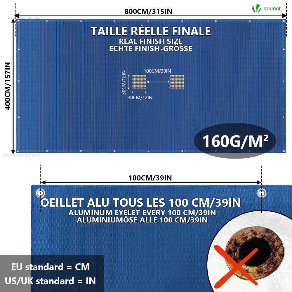Libellé VOUNOT Bache piscine rectangulaire double couche en Polyethylene 160 gr/m2 avec filet ecoulement 4x8m Bleue