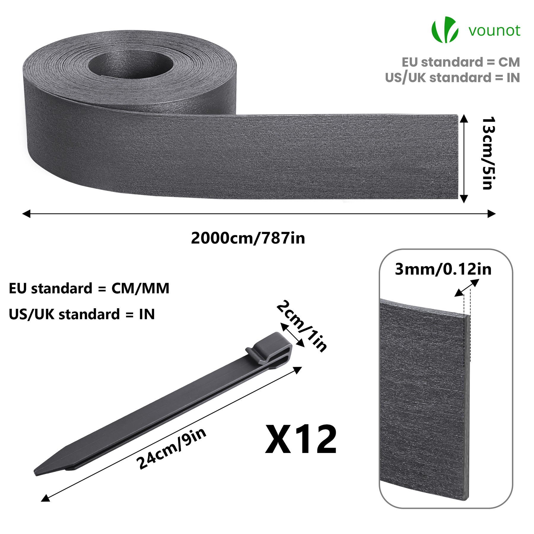 VOUNOT Bordure de jardin PE haute flexible 20M avec piquets gris