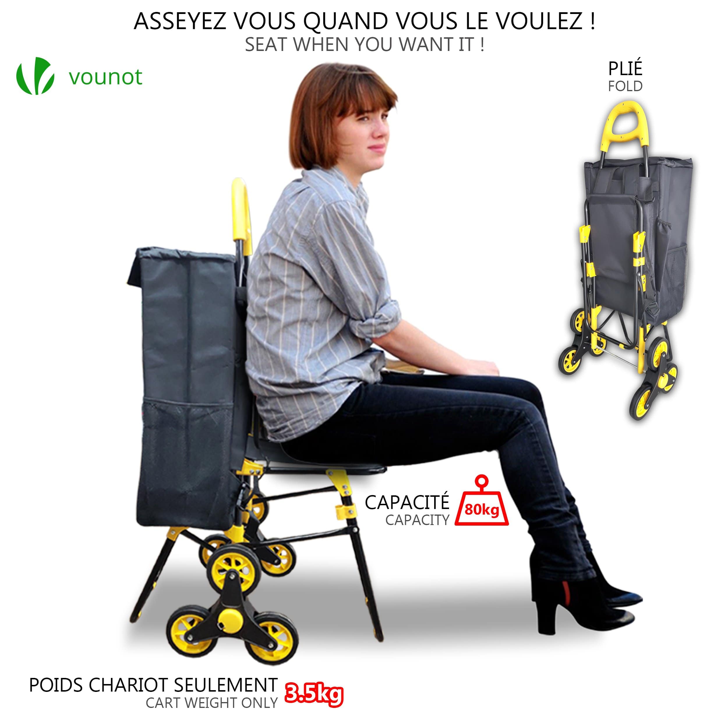 | Libellé | VOUNOT Chariot de courses pliable avec siege Jaune |