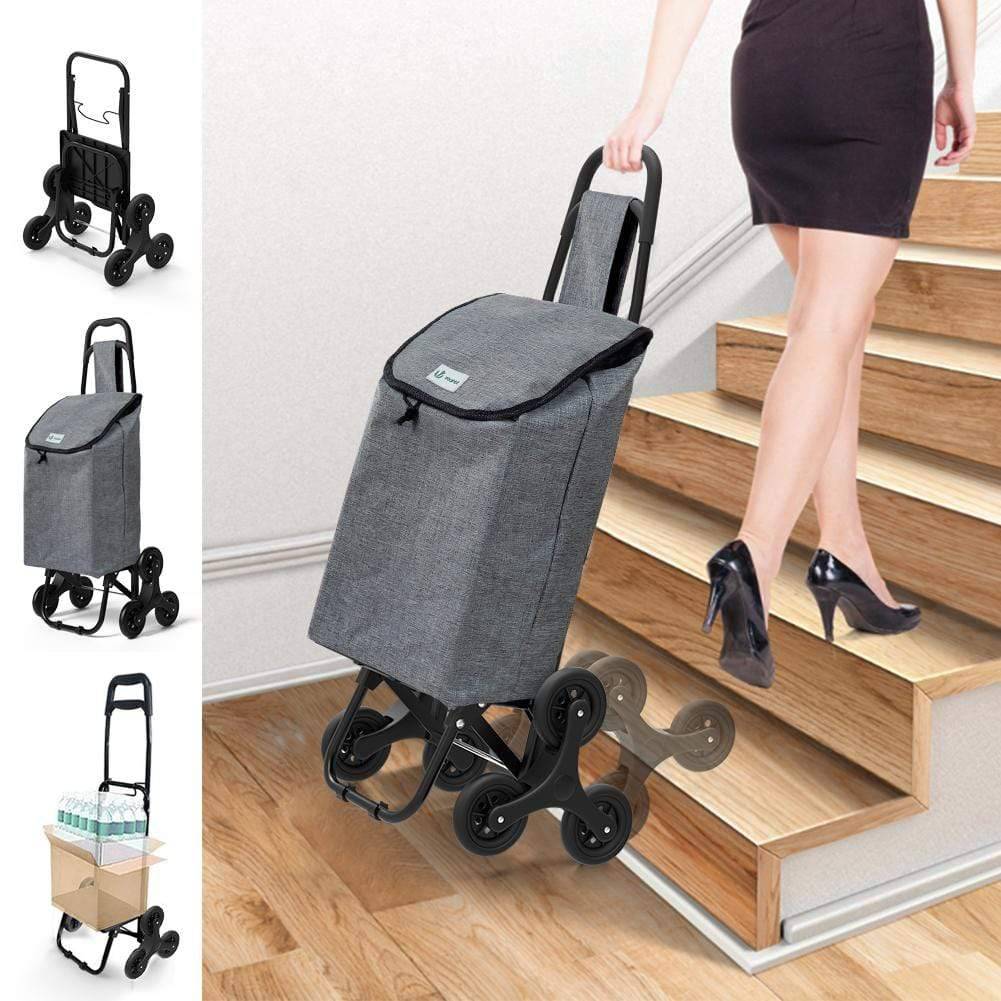 VOUNOT Chariot de courses pliable monte escalier style oxford gris