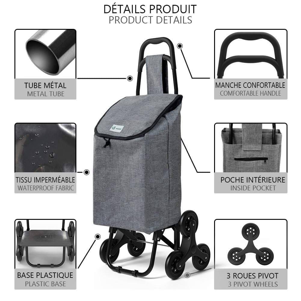 | Libellé | VOUNOT Chariot de courses pliable monte escalier style oxford gris |