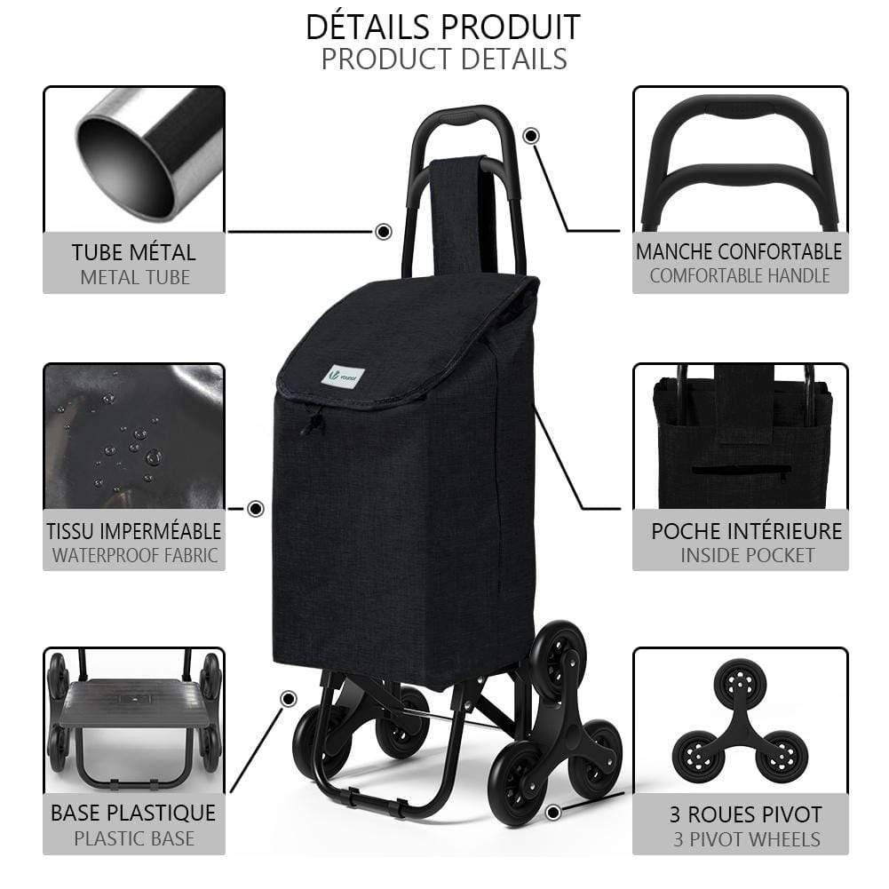 | Libellé | VOUNOT Chariot de courses pliable monte escalier style oxford noir |