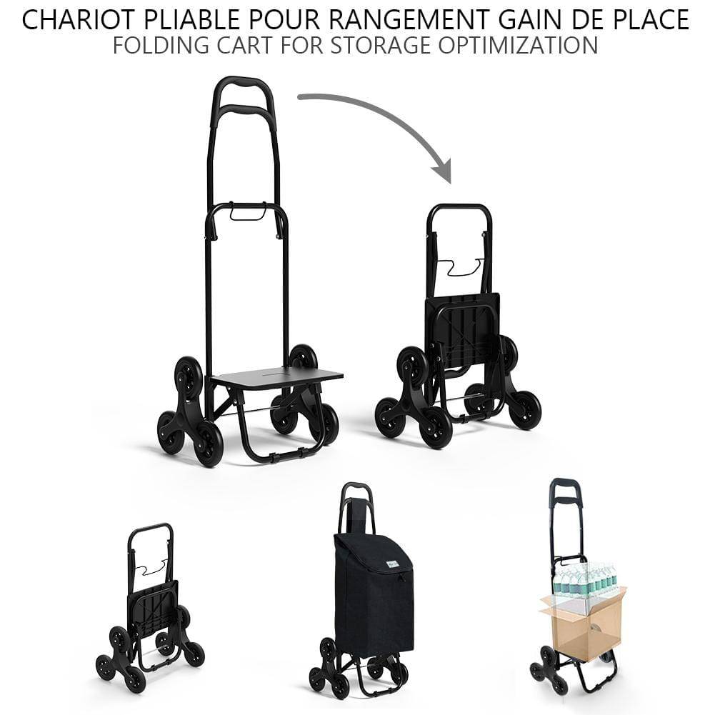 VOUNOT Chariot de courses pliable monte escalier style oxford noir