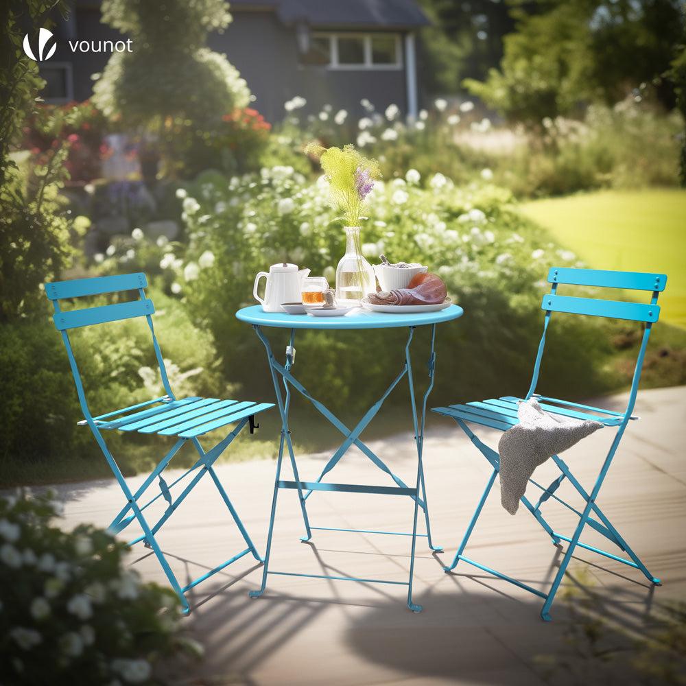 VOUNOT Ensemble bistro extérieur 1 table 2 chaises acier bleu