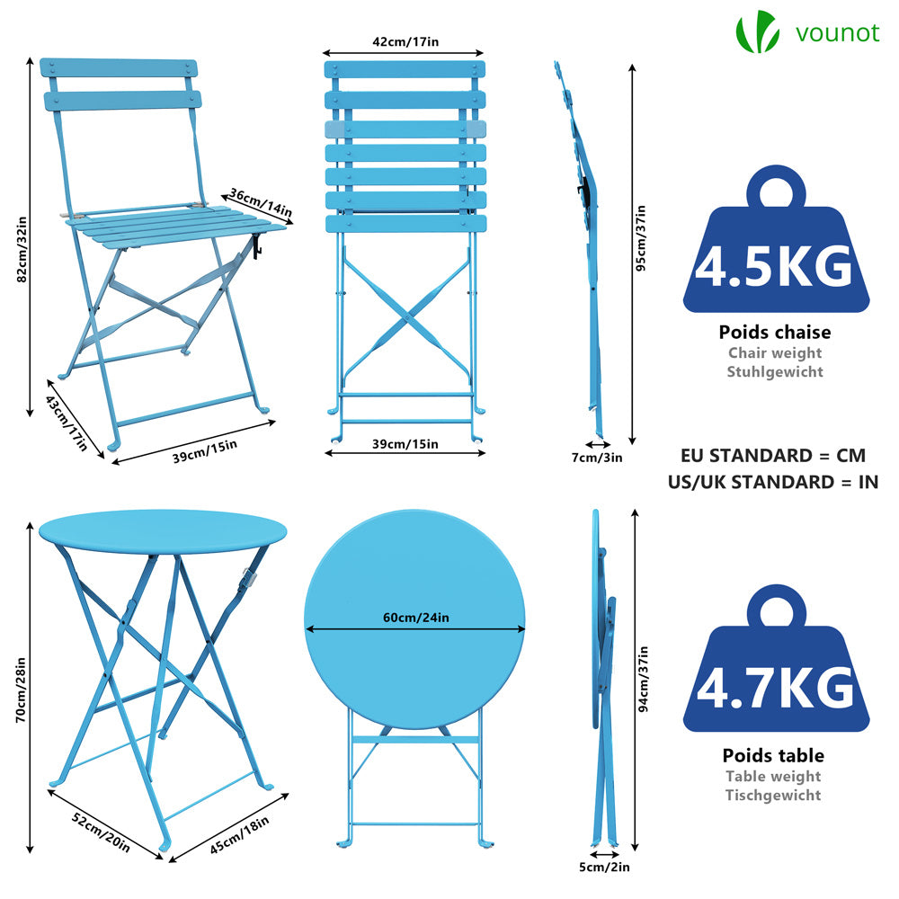 | Libellé | VOUNOT Ensemble bistro extérieur 1 table 2 chaises acier bleu |