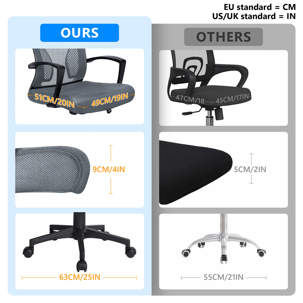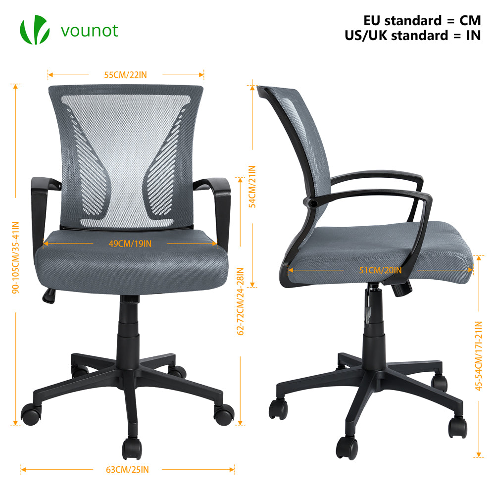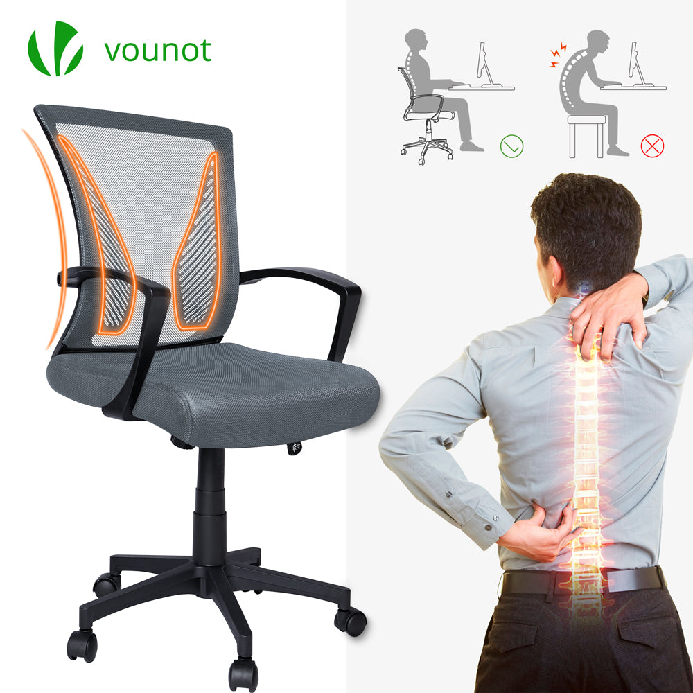 VOUNOT Fauteuil de Bureau Ergonomique pivotant avec dossier toile respirant Gris