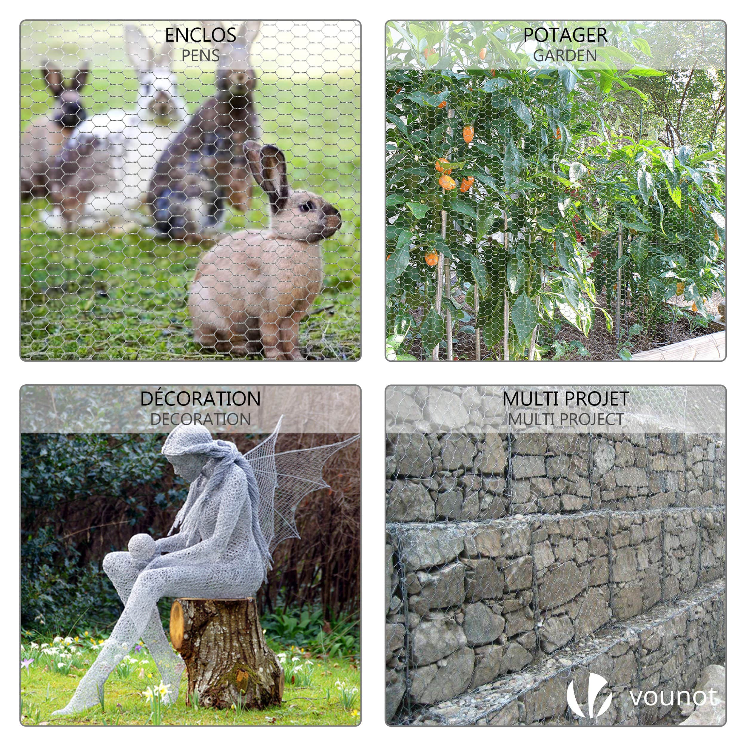 | Libellé | VOUNOT Grillage a poule avec fils 25mm en acier galvanise 1x25M |