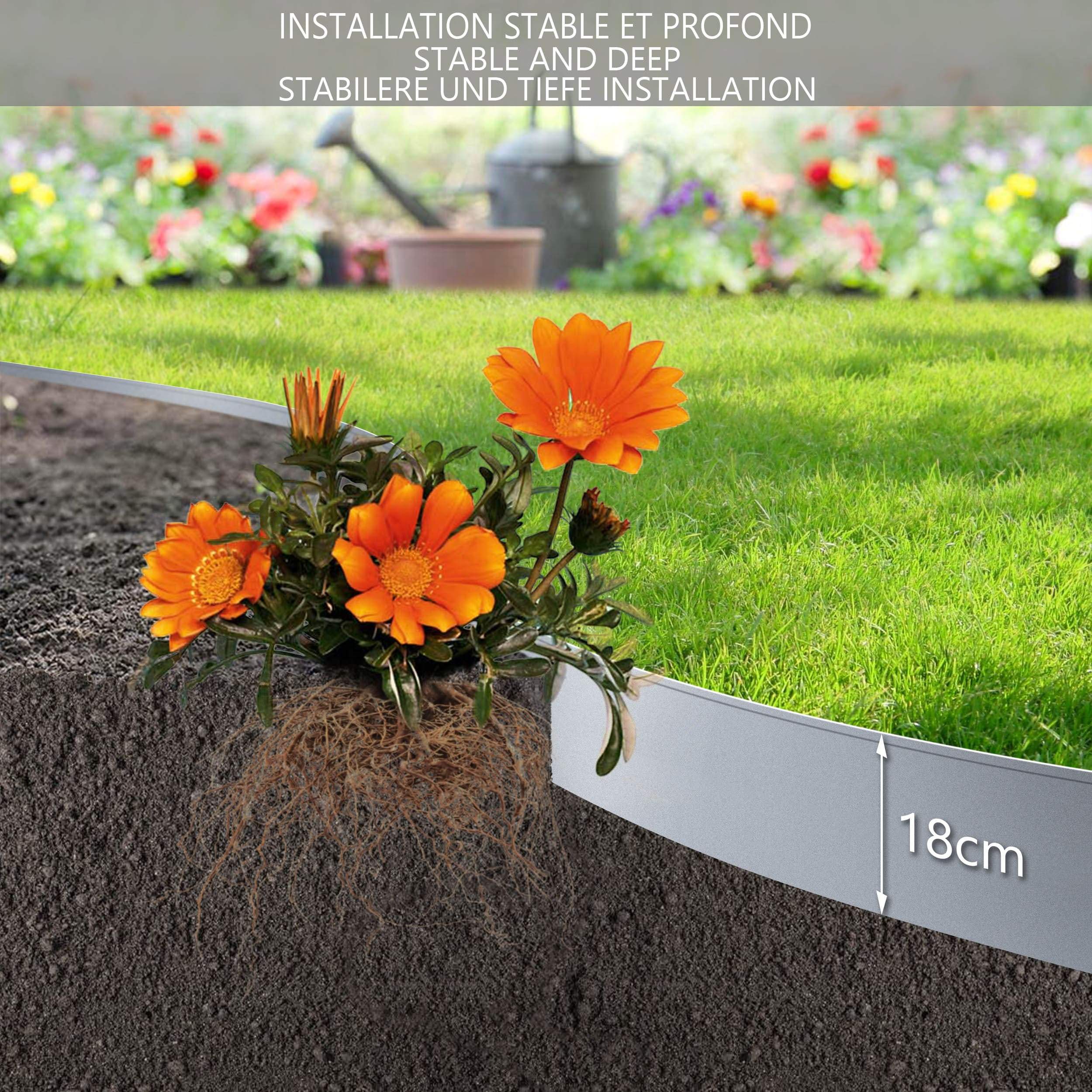 - La bordure est fabriquée en acier galvanisé qui est résistant aux intempéris et à la corrosion.