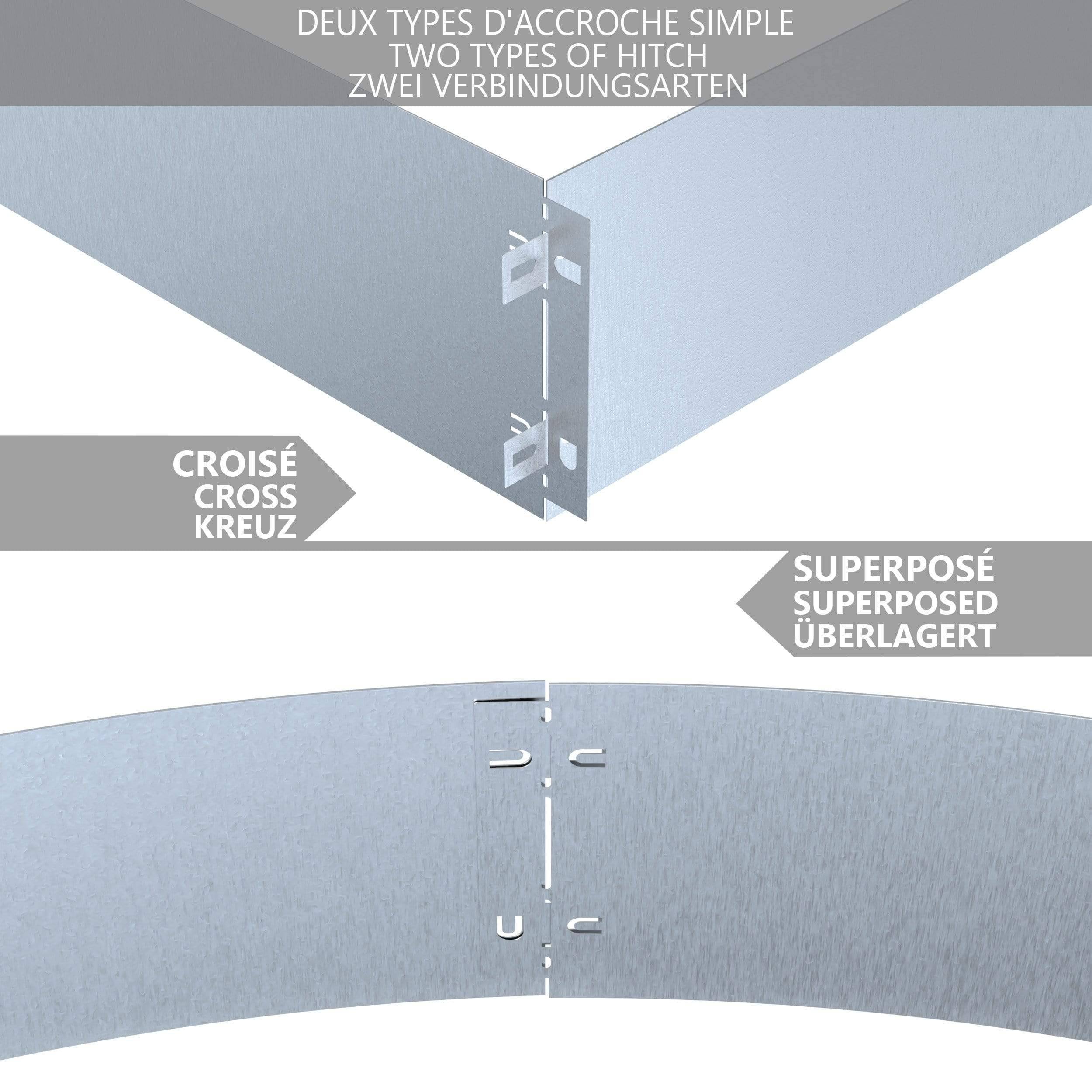 - La bordure est fabriquée en acier galvanisé qui est résistant aux intempéris et à la corrosion.