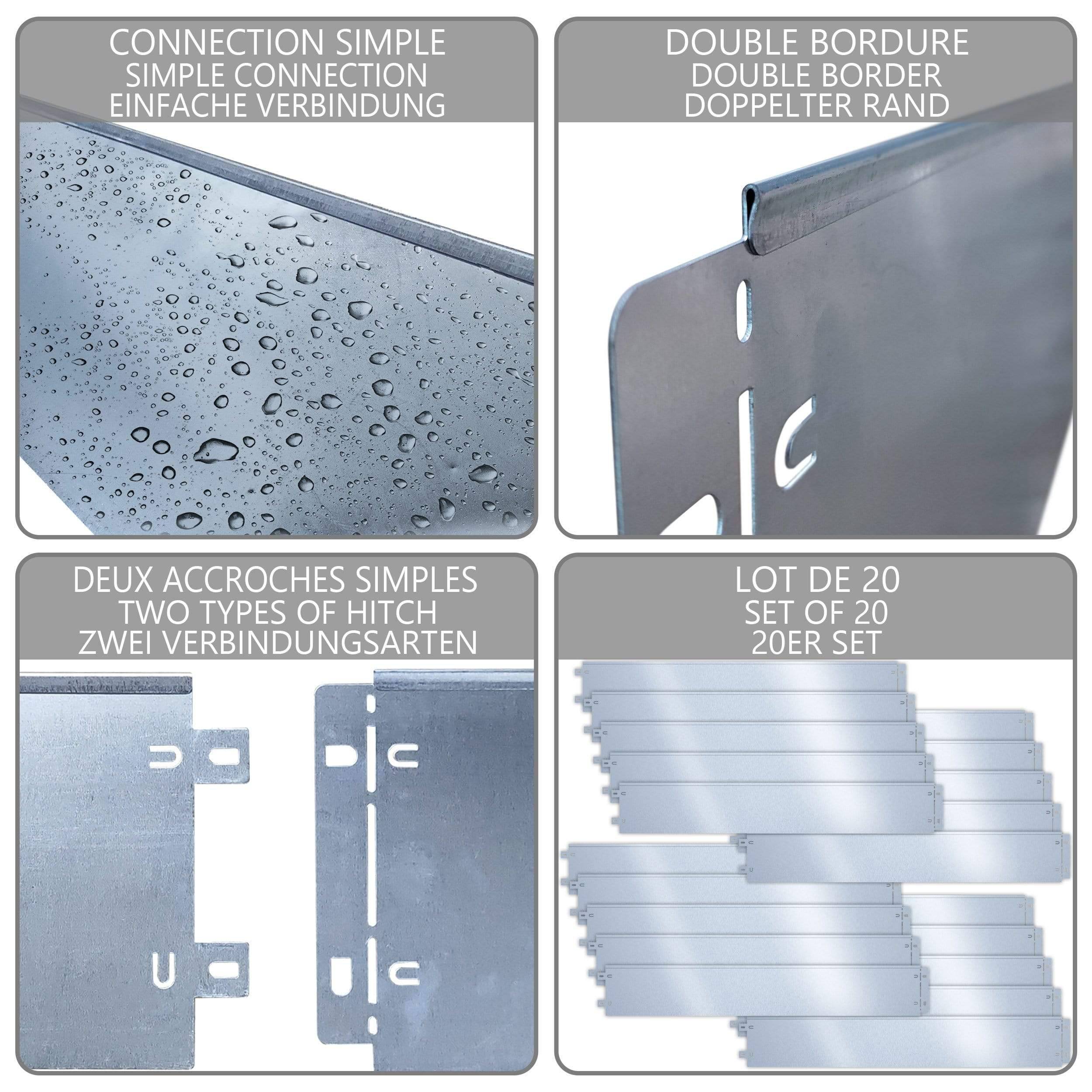 | Libellé | VOUNOT Lot de 20 Bordure de jardin en métal galvanisé flexible 100x18cm |