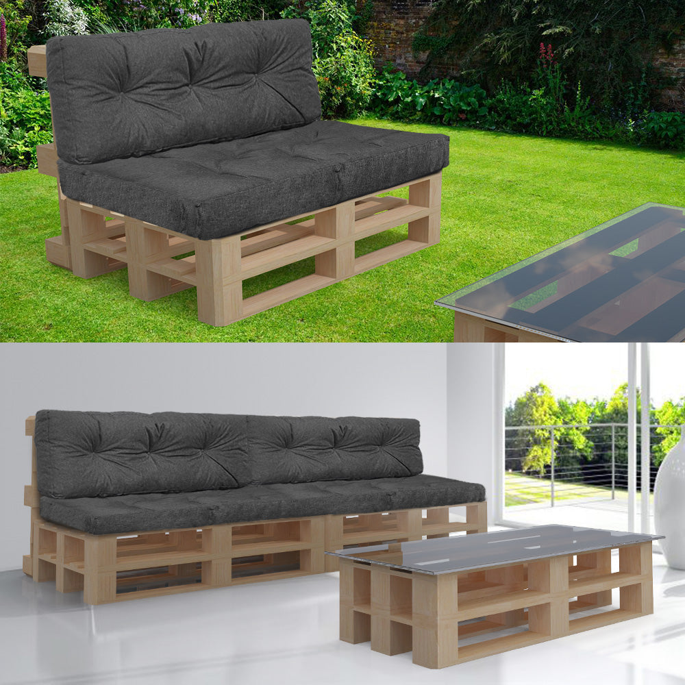 - ENSEMBLE COMPLET : Cet ensemble comprend 2 coussin d'assise 80x120x15cm + 2 coussin de dossier (12 à 15)x40x120cm. Vous pouvez les combiner avec des palettes europe qui ne sont pas incluses.