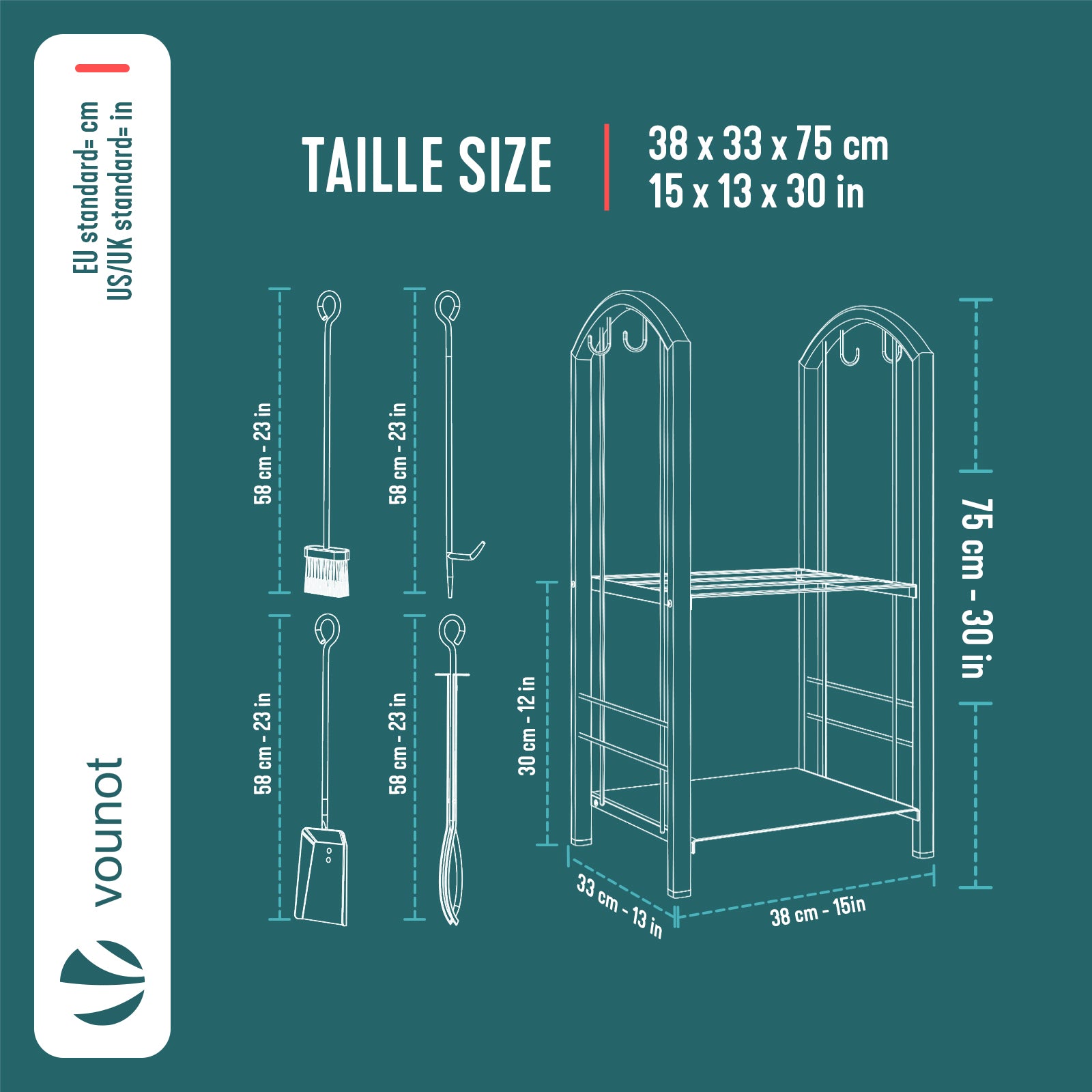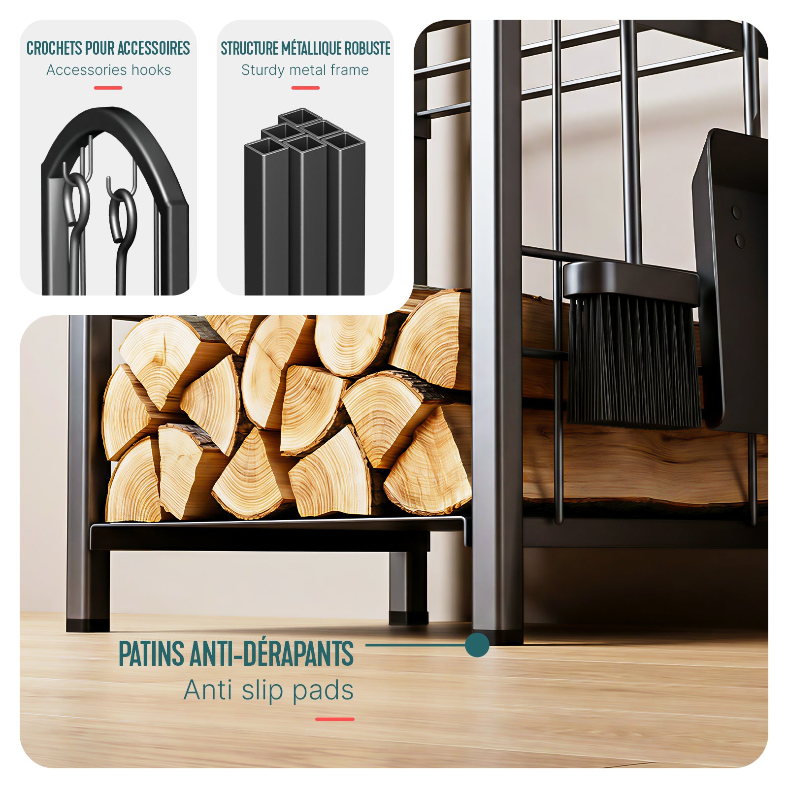 | Libellé | VOUNOT Porte buches cheminee avec 4 outils en metal noir |