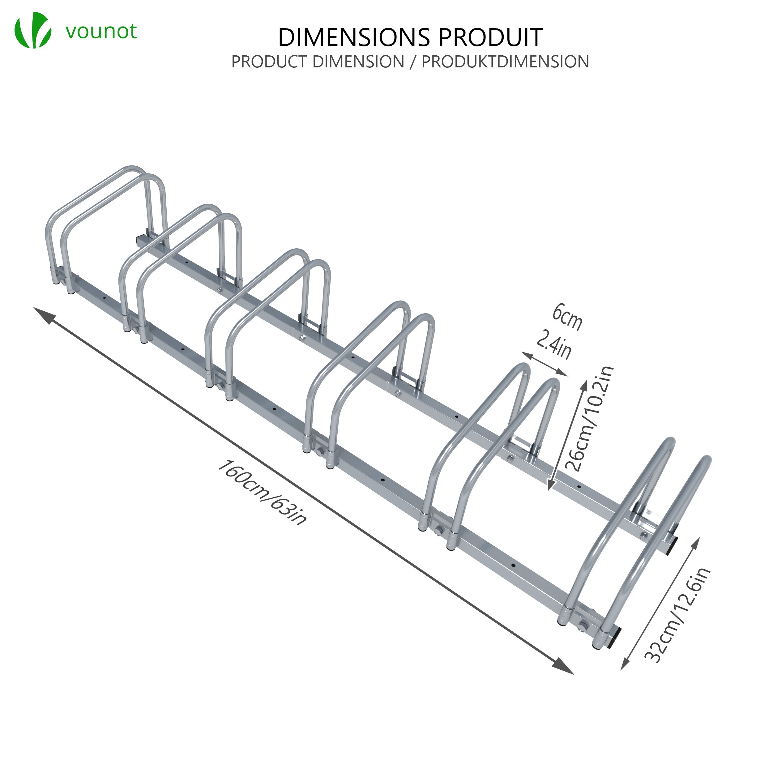 | Libellé | VOUNOT Ratelier range velo acier mural et sol 6 vélos |