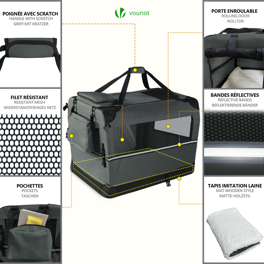 | Libellé | VOUNOT Sac transport pliable chien chat caisse cage portable 70x52x52cm gris |