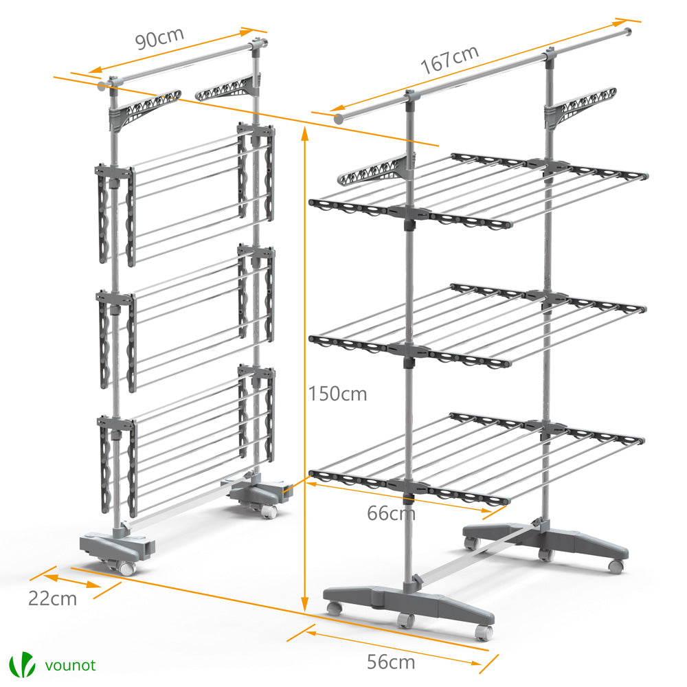 VOUNOT Sechoir a linge etendoir pliable ailes pliables 3 niveaux