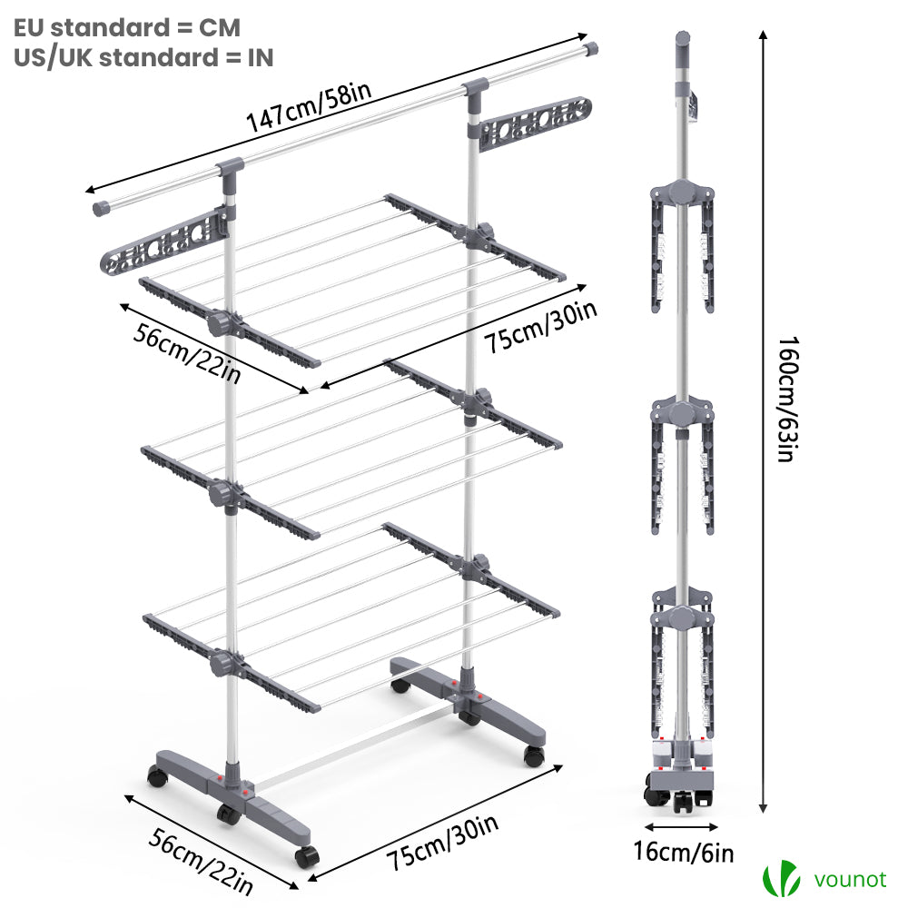 | Libellé | VOUNOT Sechoir a linge inox etendoir robuste ailes pliables 3 niveaux |