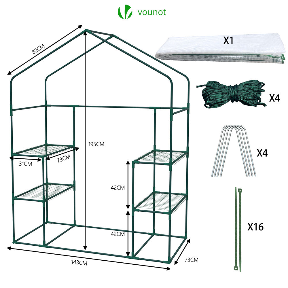 | Libellé | VOUNOT Serre de jardin avec etageres et bache PE renforcee 135g/m2 143x73x195cm |