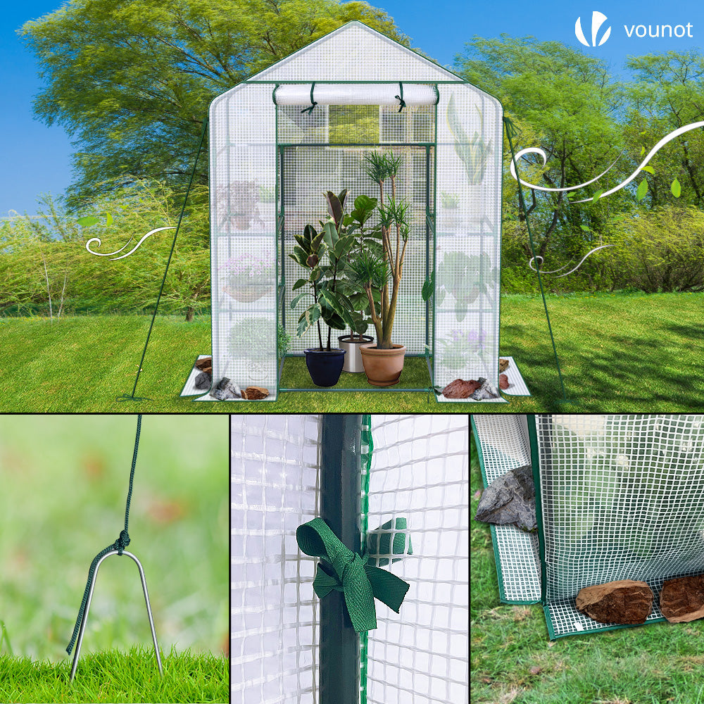 VOUNOT Serre de jardin avec etageres et bache PE renforcee 135g/m2 143x73x195cm