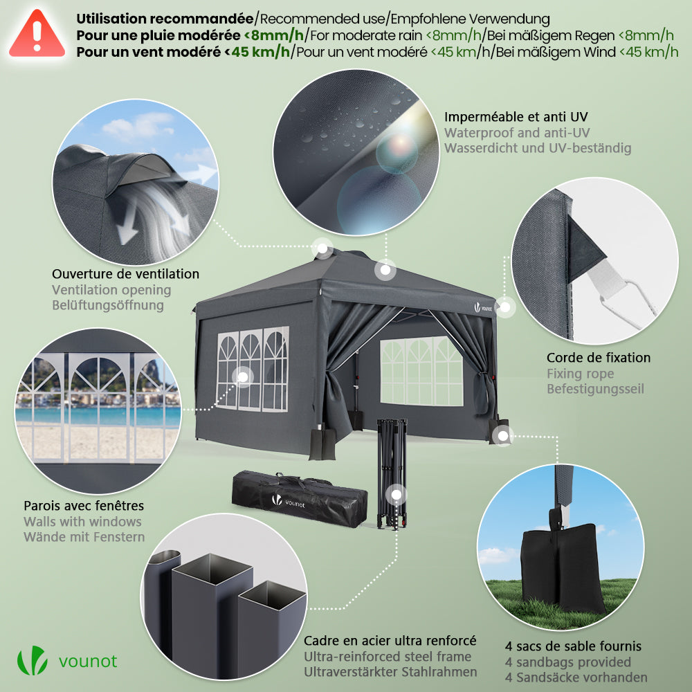 | Libellé | VOUNOT Tonnelle de Jardin 3x3m POP UP installation facile avec portes et fenetres Gris |