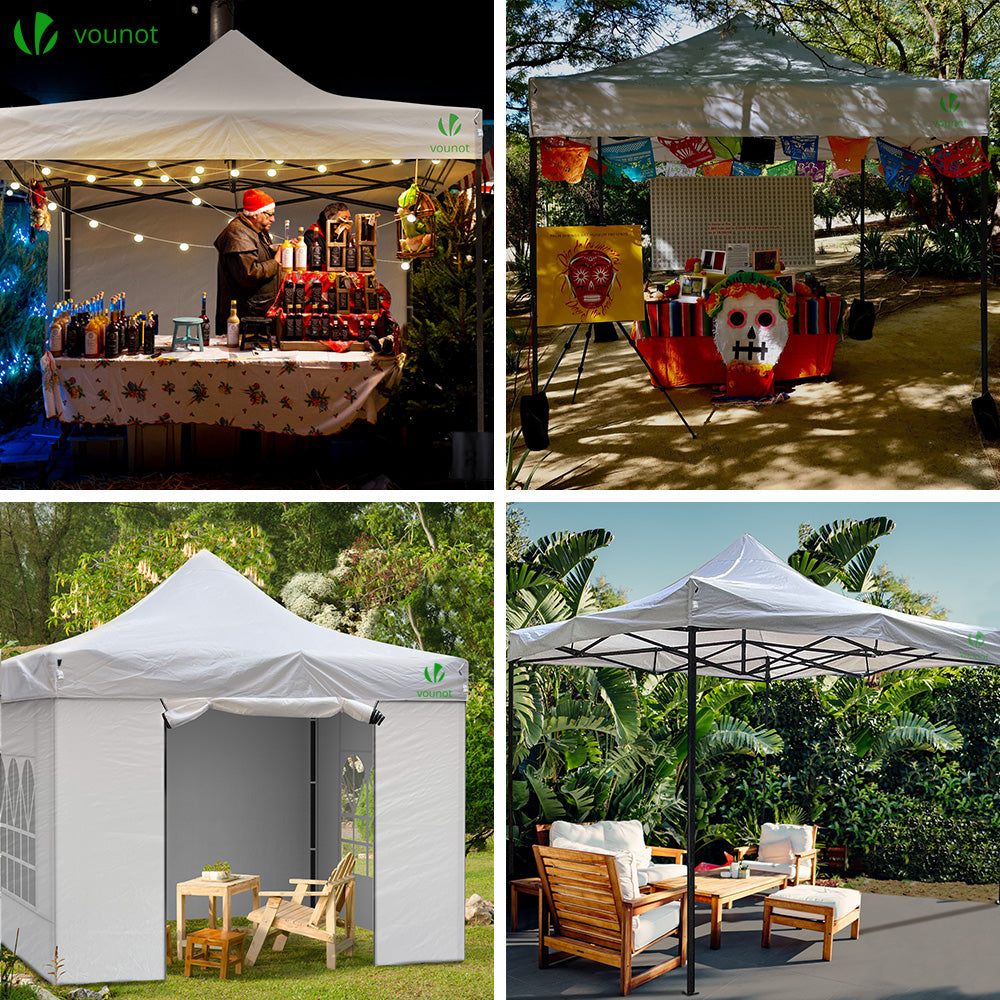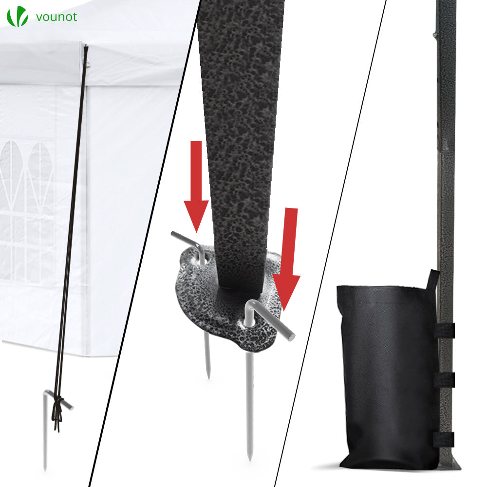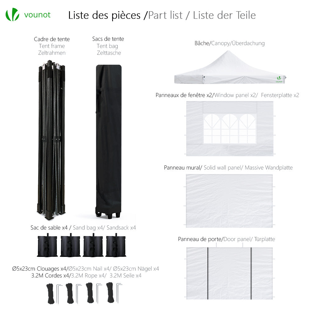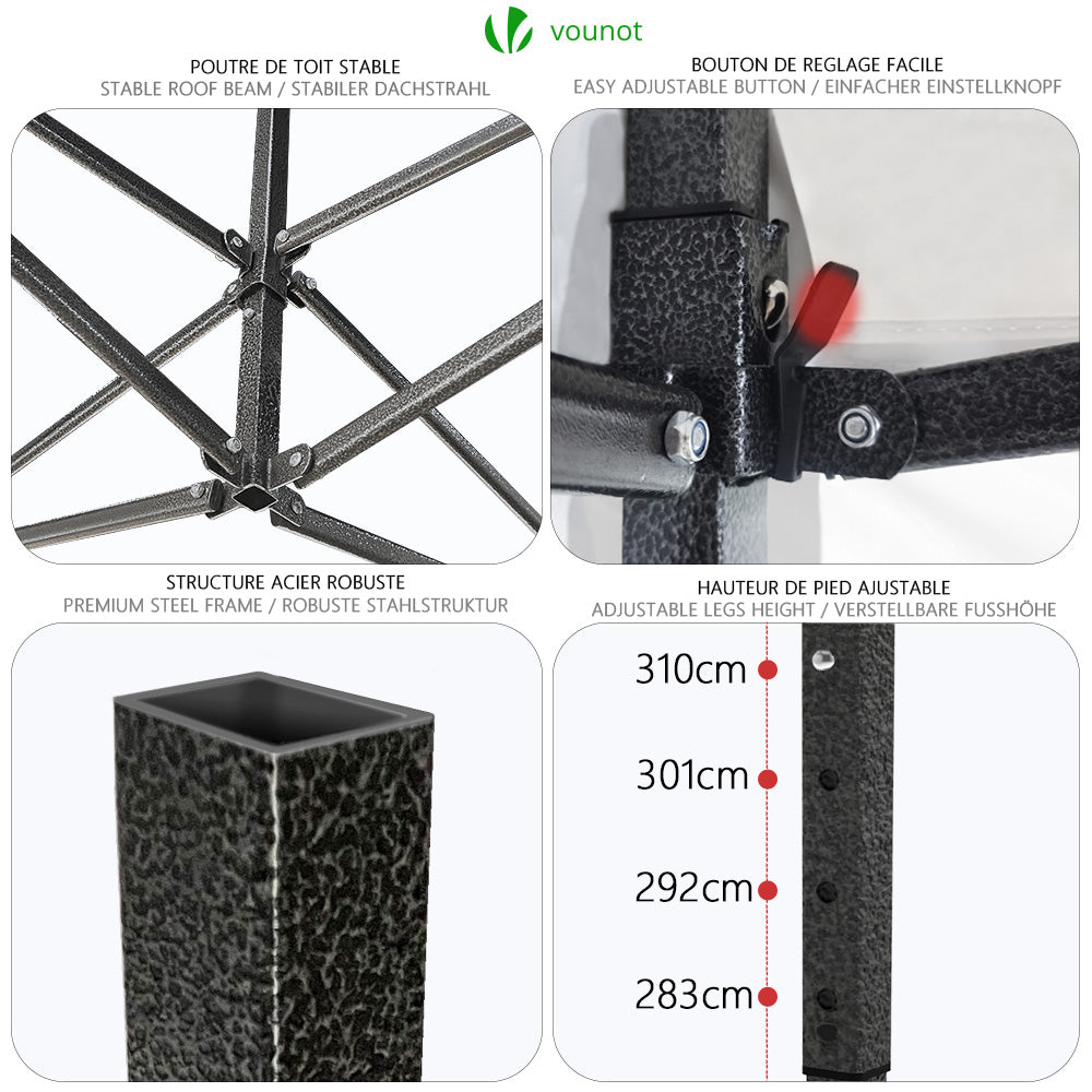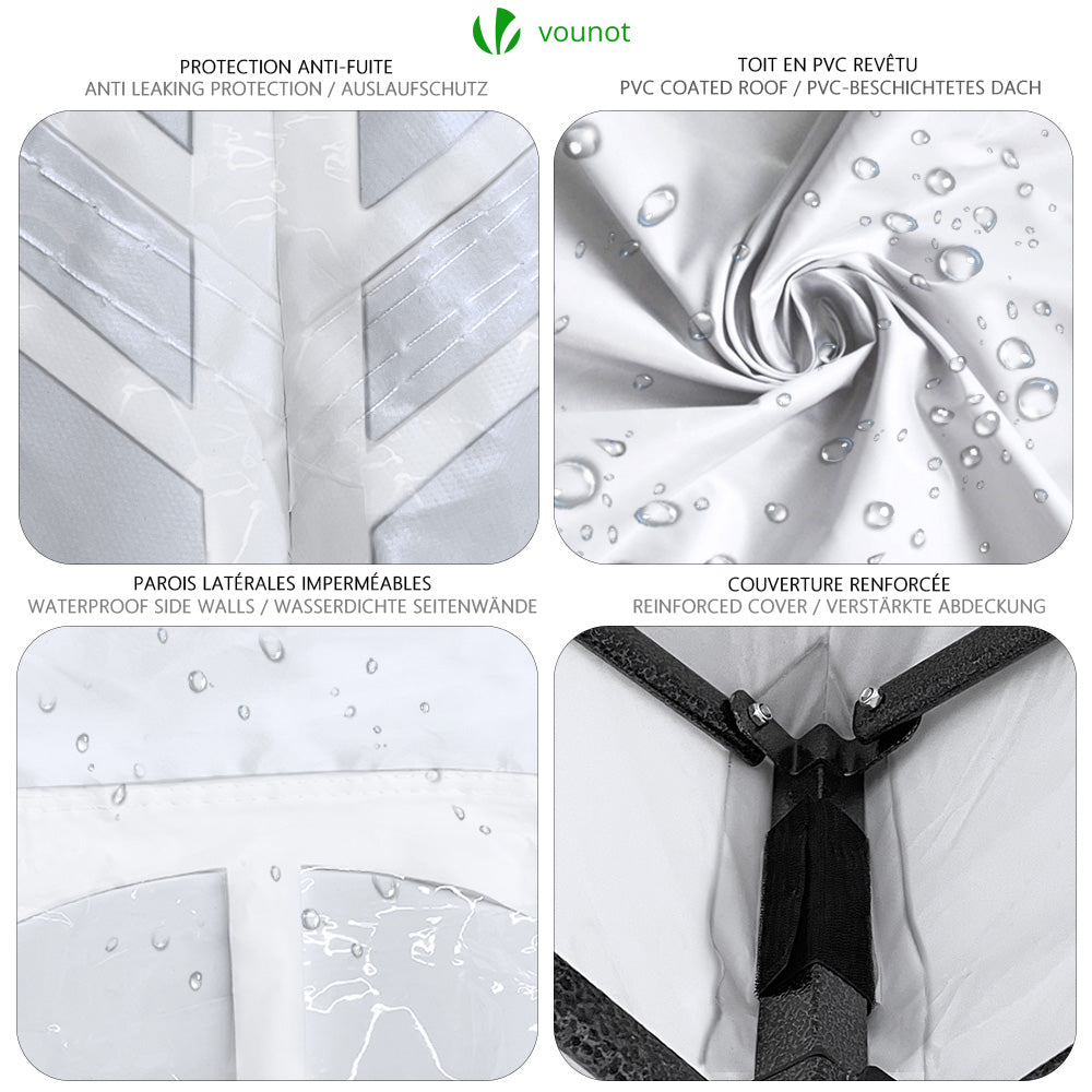 | Libellé | VOUNOT Tonnelle de jardin renforcée 3x3m pliable avec 4 parois et sac de transport a roulette blanche |