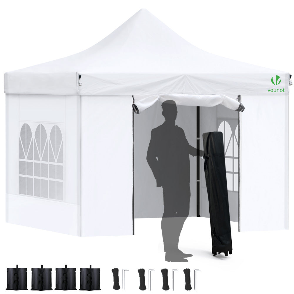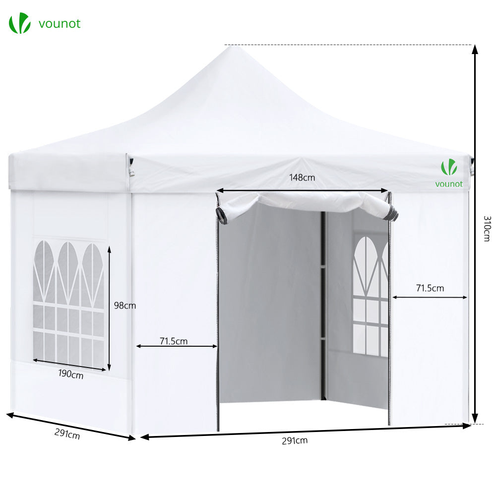 VOUNOT Tonnelle de jardin renforcée 3x3m pliable avec 4 parois et sac de transport a roulette blanche