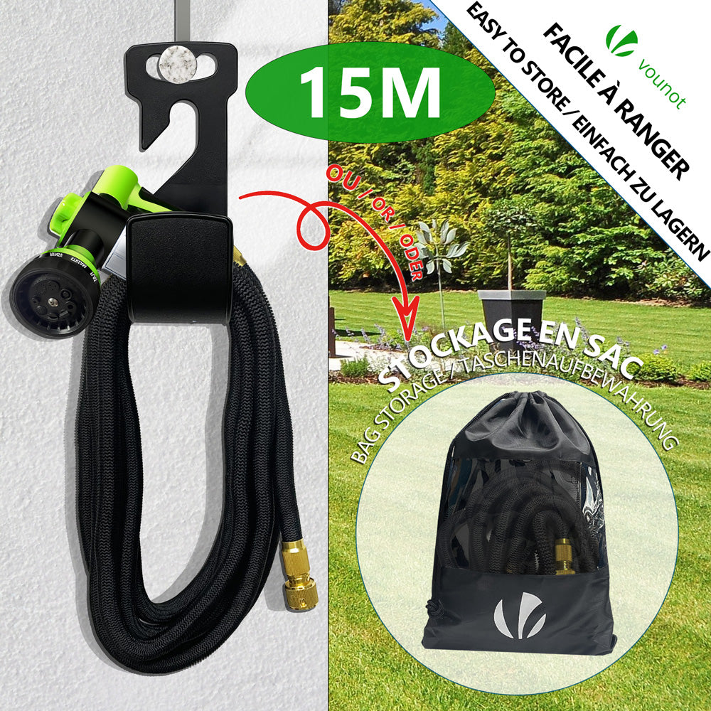- Grâce au crochet et sac de stockage fournis, vous pouvez ranger le tuyau facilement dans un coin de jardin et le transporter partout avec vous !