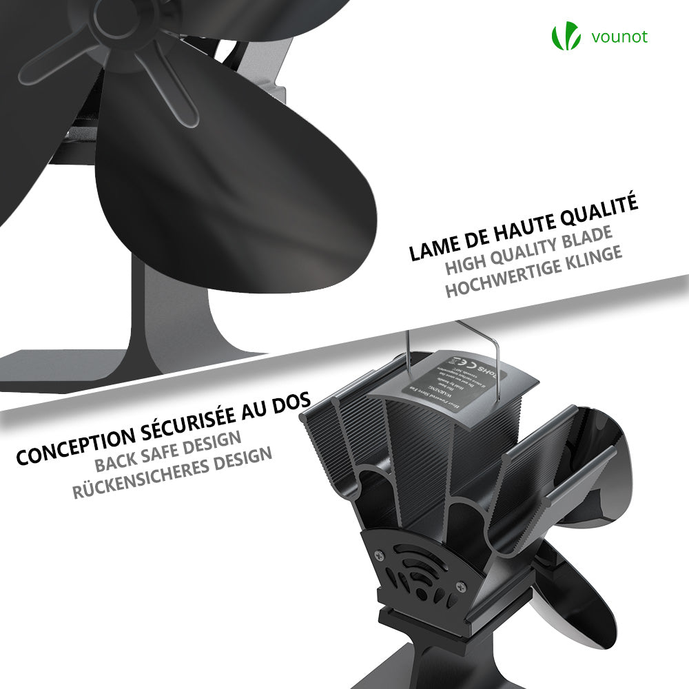 | Libellé | VOUNOT Ventilateur poele bois 4 lames avec Protection Contre le Surchauffe |