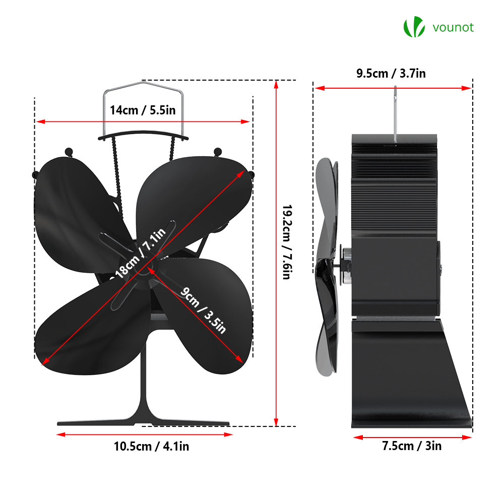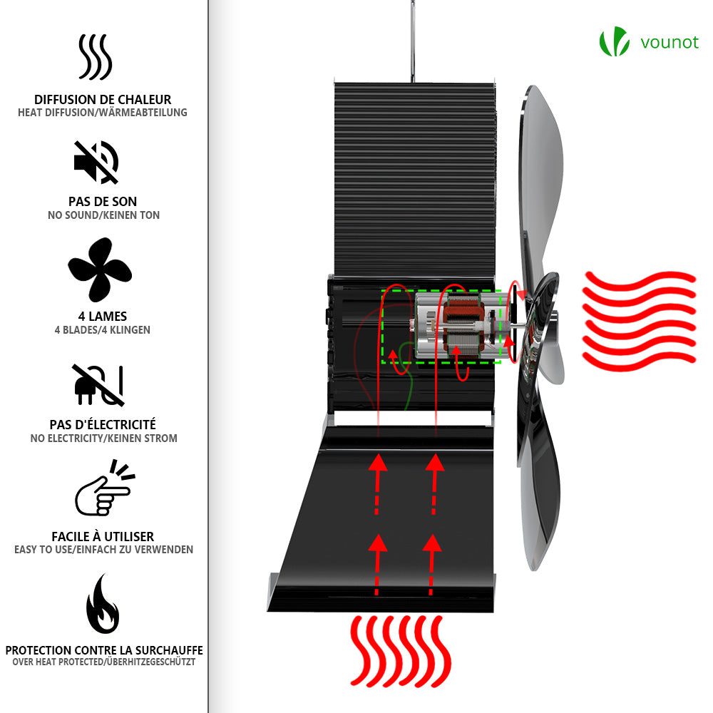 VOUNOT Ventilateur poele bois 4 lames avec Protection Contre le Surchauffe
