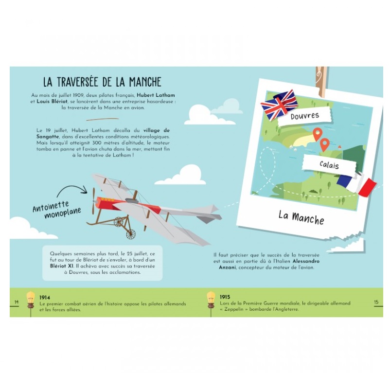 Un livre-jeu grand format qui contient 32 pages illustrées sur le thème du vol et toutes les pièces pour construire la maquette détaillée d’un avion. Des notions historiques et techniques précises introduiront l’enfant dans le monde fascinant de l’aviation et la maquette stimulera son habileté pratique.