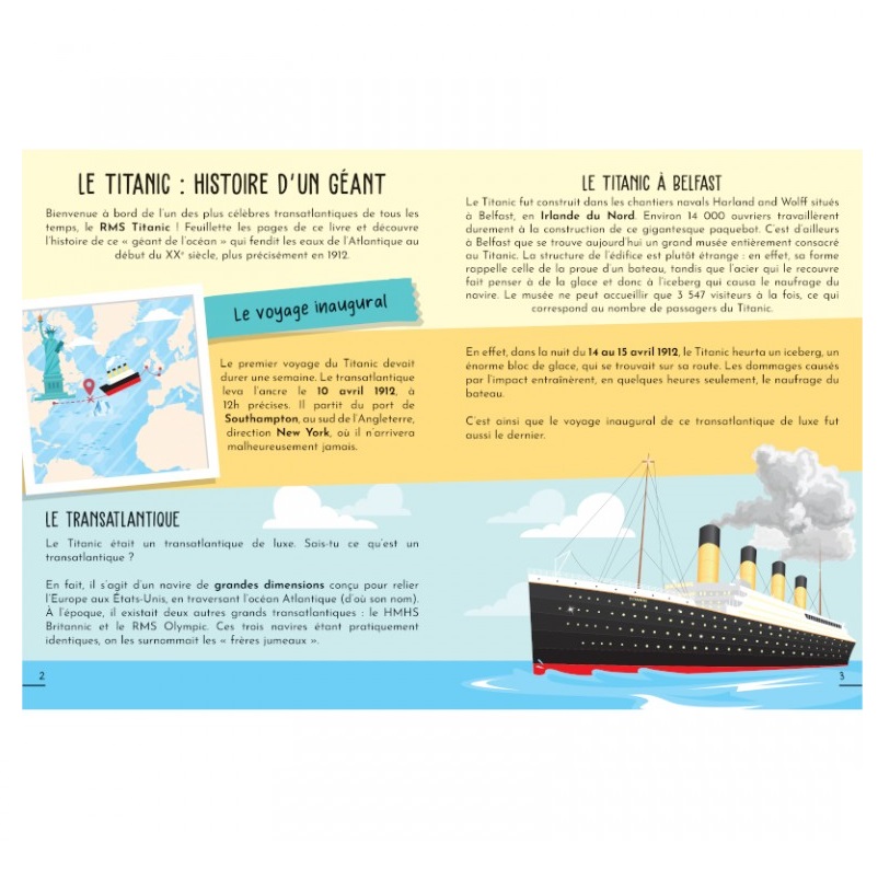Suis les instructions pour assembler les pièces et construire la maquette 3D du plus célèbre transatlantique de tous les temps, puis navigue au gré de ton imagination. Dans le livre, tu trouveras la description des pièces les plus significatives.