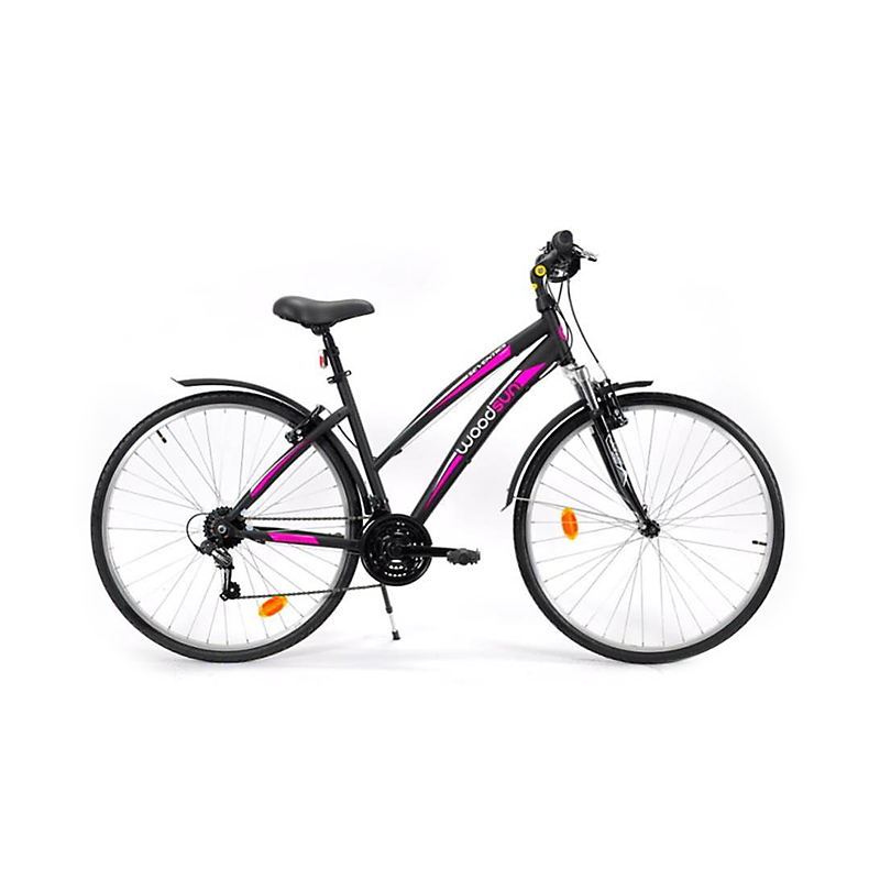 VTT 28'' SEVENTIES FEMME ALUMINIUM - Cadre Alu rigide - Fourche télescopique - 21 Vitesses par poignées tournantes Microshift - Roue libre 7 vitesses - Dérailleur arrière Shimano TY21 - Potence réglable alu -Freins avant et arrière V Brake acier & Leviers Alu - Jantes aluminium avec pneus noirs - Attache rapide de selle - Protège dérailleur - Béquille alu - Sonnette - Eclairage à piles fournies + Marquage d'identification cycle inclus