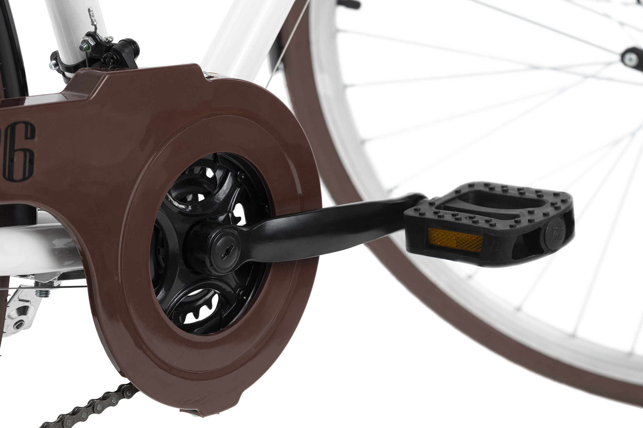 Le VTC 28" VENICE de KS Cycling va vous accompagner partout, que ce soit en ville ou pour vos balades à la campagne. Avec son cadre blanc combiné à des détails élégants, il a un look particulièrement classe. De plus, les pneus, le protège-chaîne, la selle et les poignées sont de la même couleur et complètent le design.