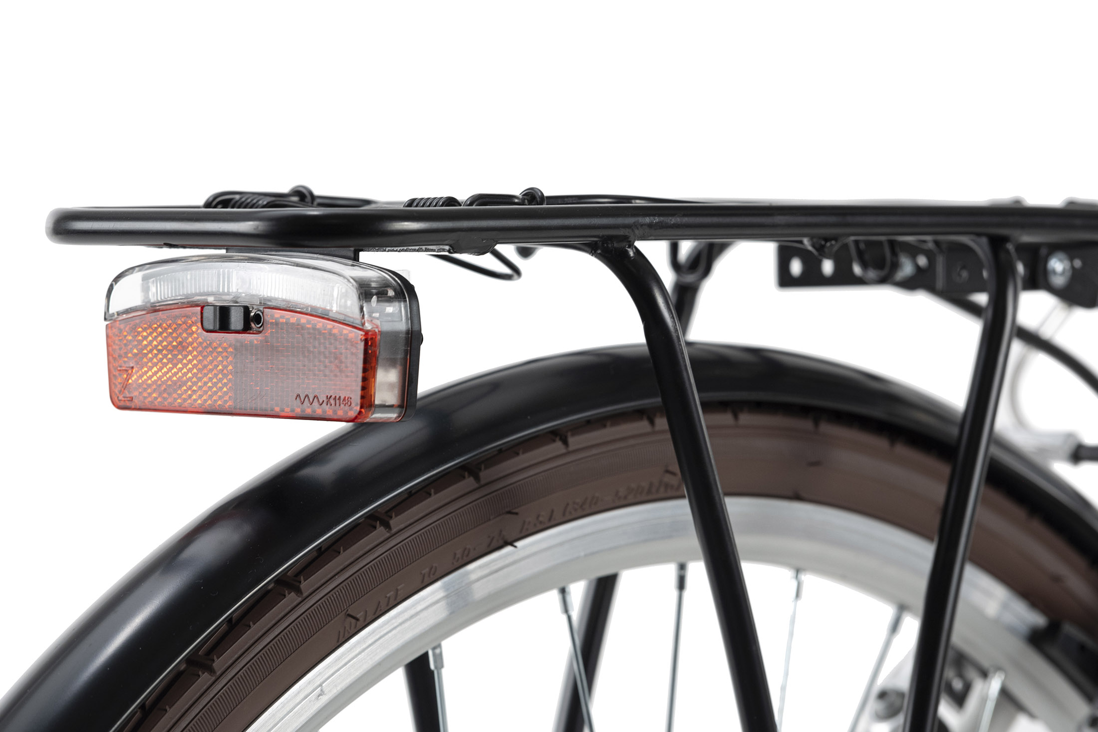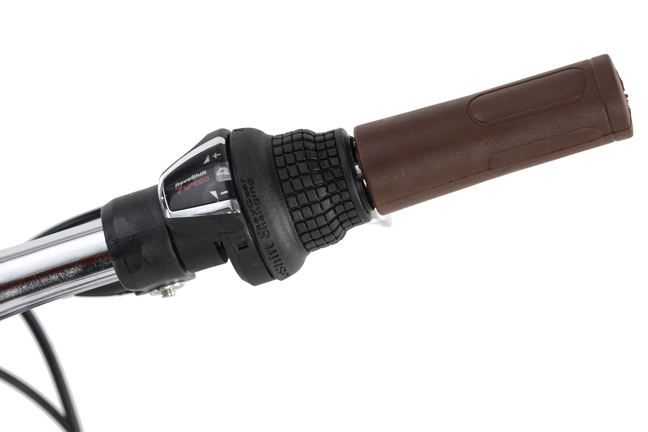 Pas de problème dans les montées avec les 21 vitesses du dérailleur SHIMANO. L'inclinaison de la potence est réglable et, grâce à la selle suspendue, qui peut être réglée en fonction du poids du cycliste, les passages un peu accidentés seront amortis. Pour que chaque déplacement soit un plaisir!