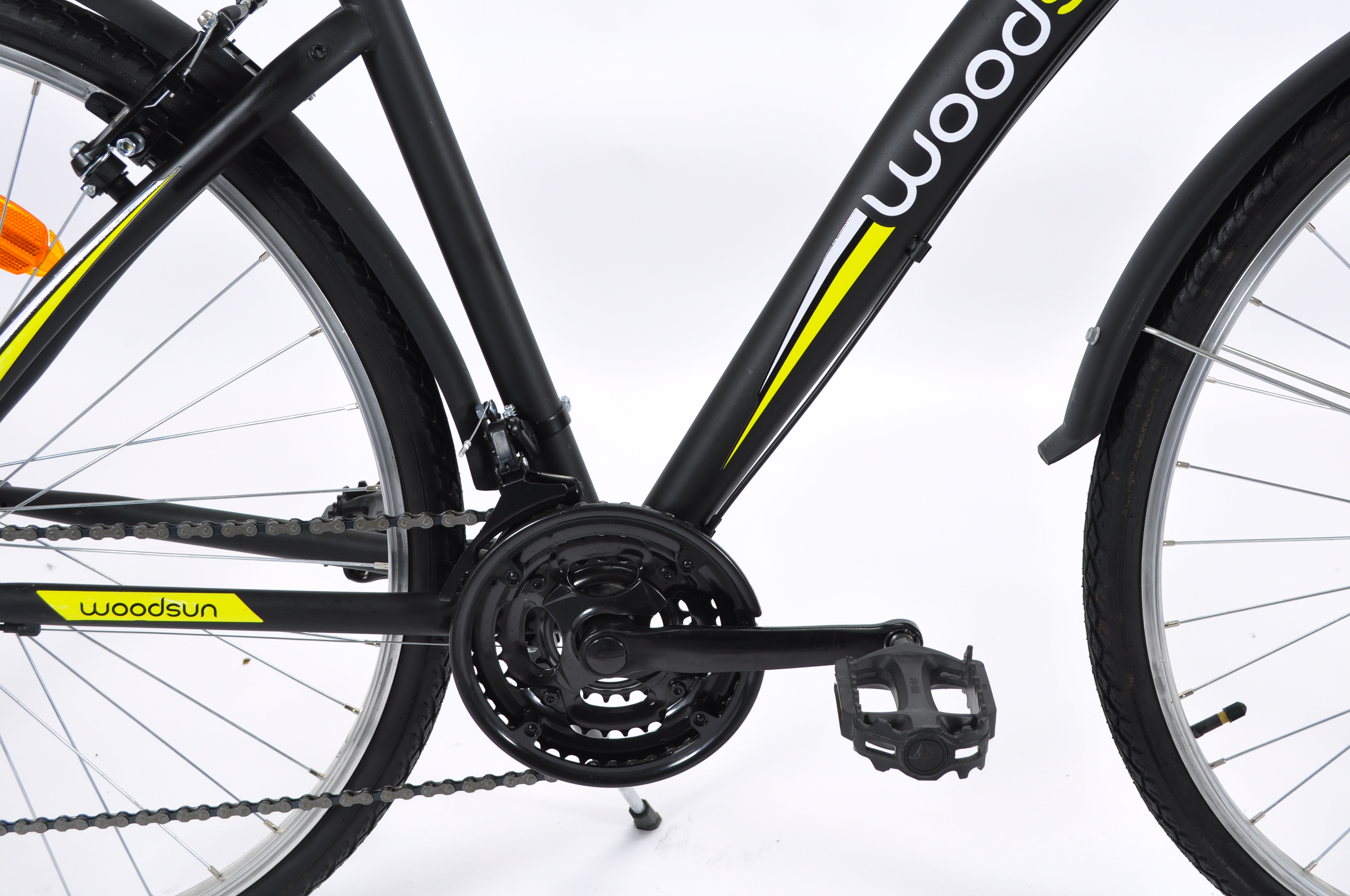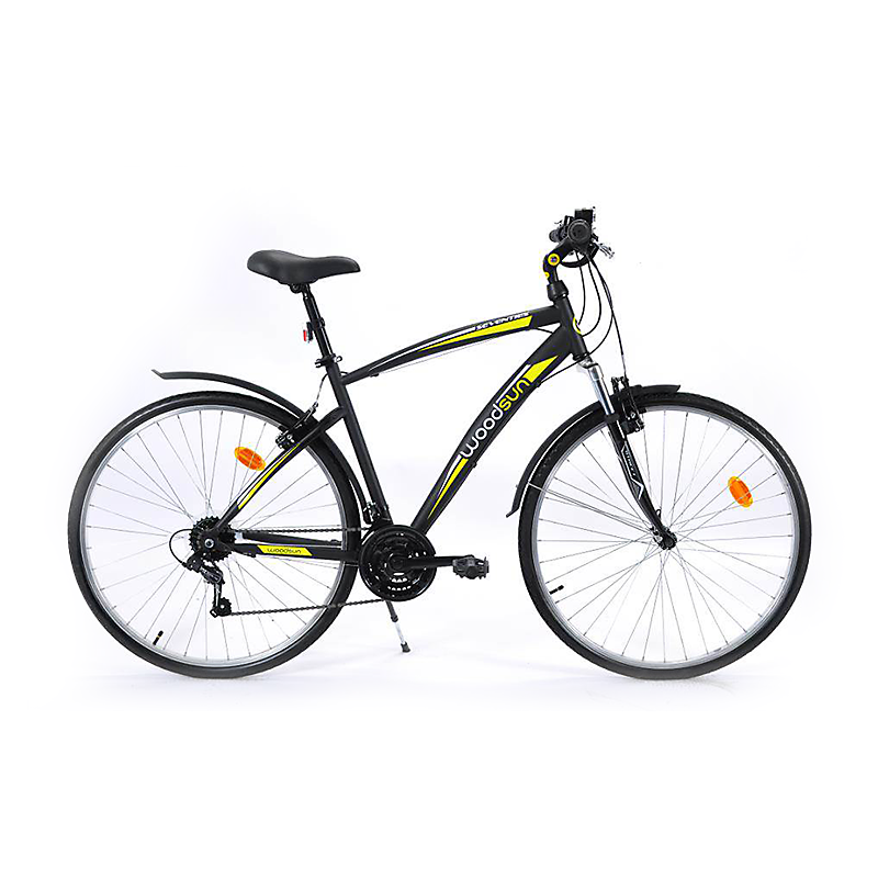 VTT 28'' SEVENTIES HOMME ALUMINIUM - Cadre Alu rigide - Fourche télescopique - 21 Vitesses par poignées tournantes Microshift - Roue libre 7 vitesses - Dérailleur arrière Shimano TY21 - Potence réglable alu -Freins avant et arrière V Brake acier & Leviers Alu - Jantes aluminium avec pneus noirs - Attache rapide de selle - Protège dérailleur - Béquille alu - Sonnette - Eclairage à piles fournies + Marquage d'identification cycle inclus