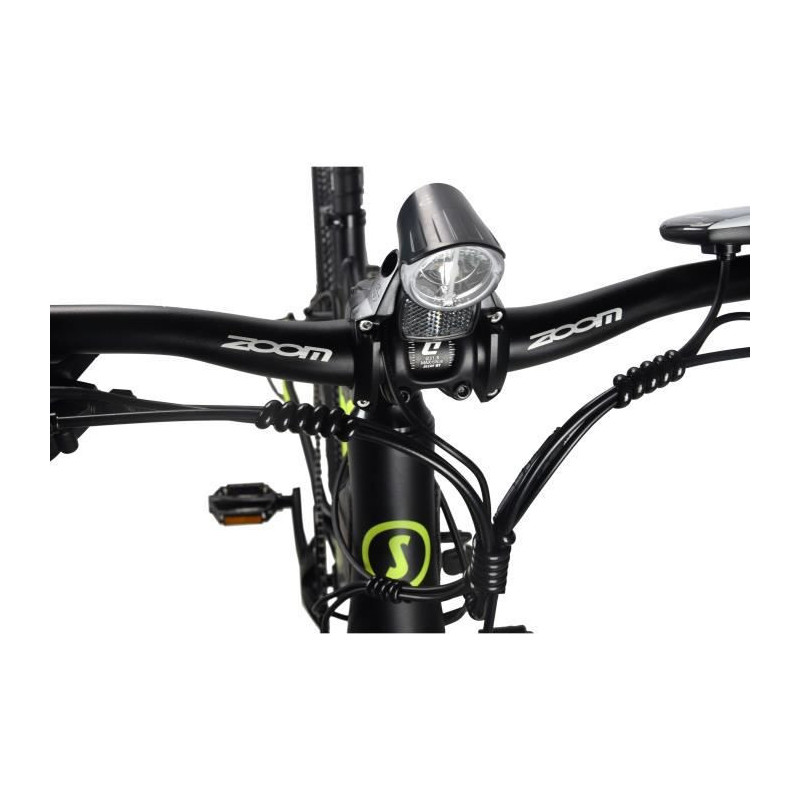 Vélo Tout Terrain a assistance électrique 27,5'' - Cadre ALU NOIR Mat - 24 vitesses dérailleur Shimano® - Freins a disque - Moteur arriere 250W 36V - Batterie amovible sécurisée (2 clés) 10 Ah jusqu'a 50-60km - Fourche avant ZOOM - Ecran LCD 3 modes d'assistance - lumiere avant et arriere, réflecteurs