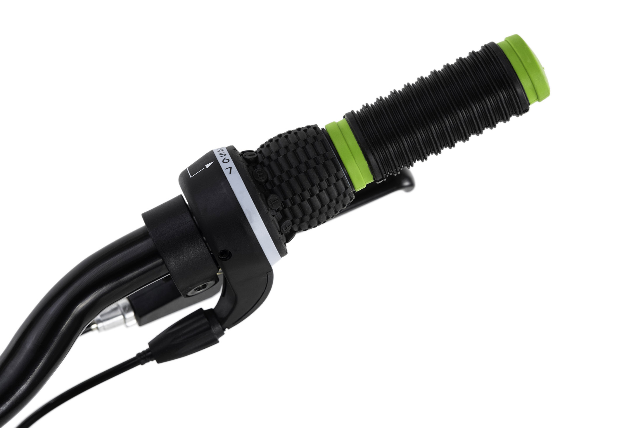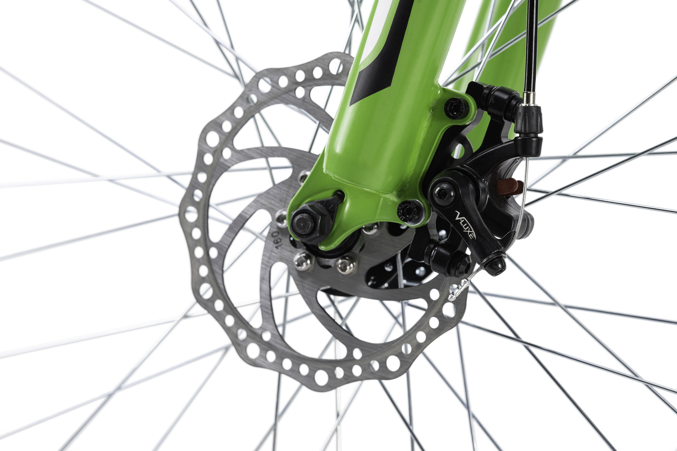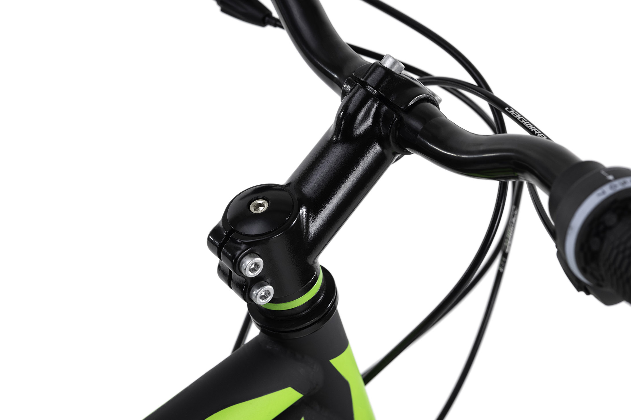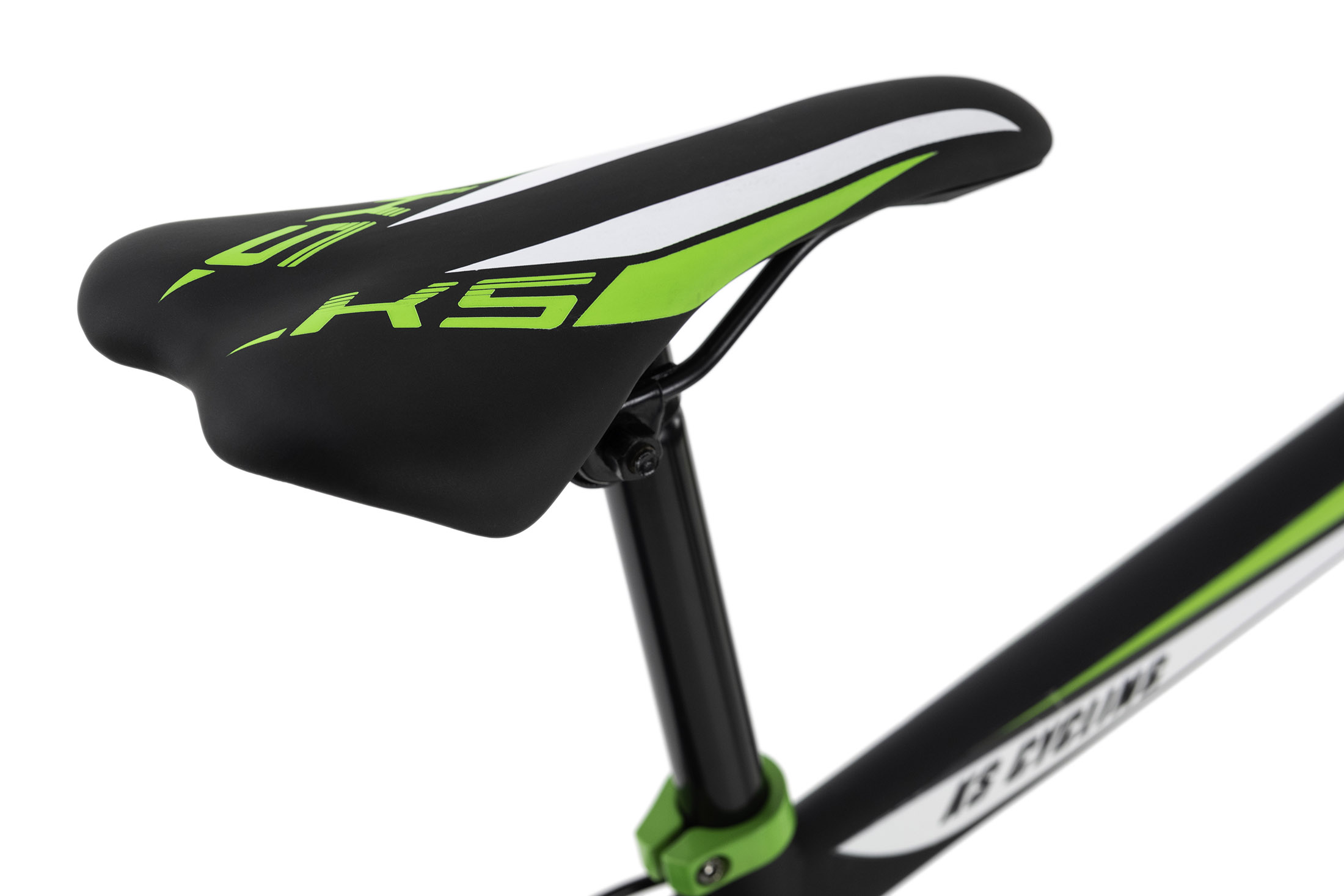 Les accents de couleur verte sont également présents en plus de la fourche, sur les poignées, les entretoises Ahead, l'anneau de serrage à vis de la selle.