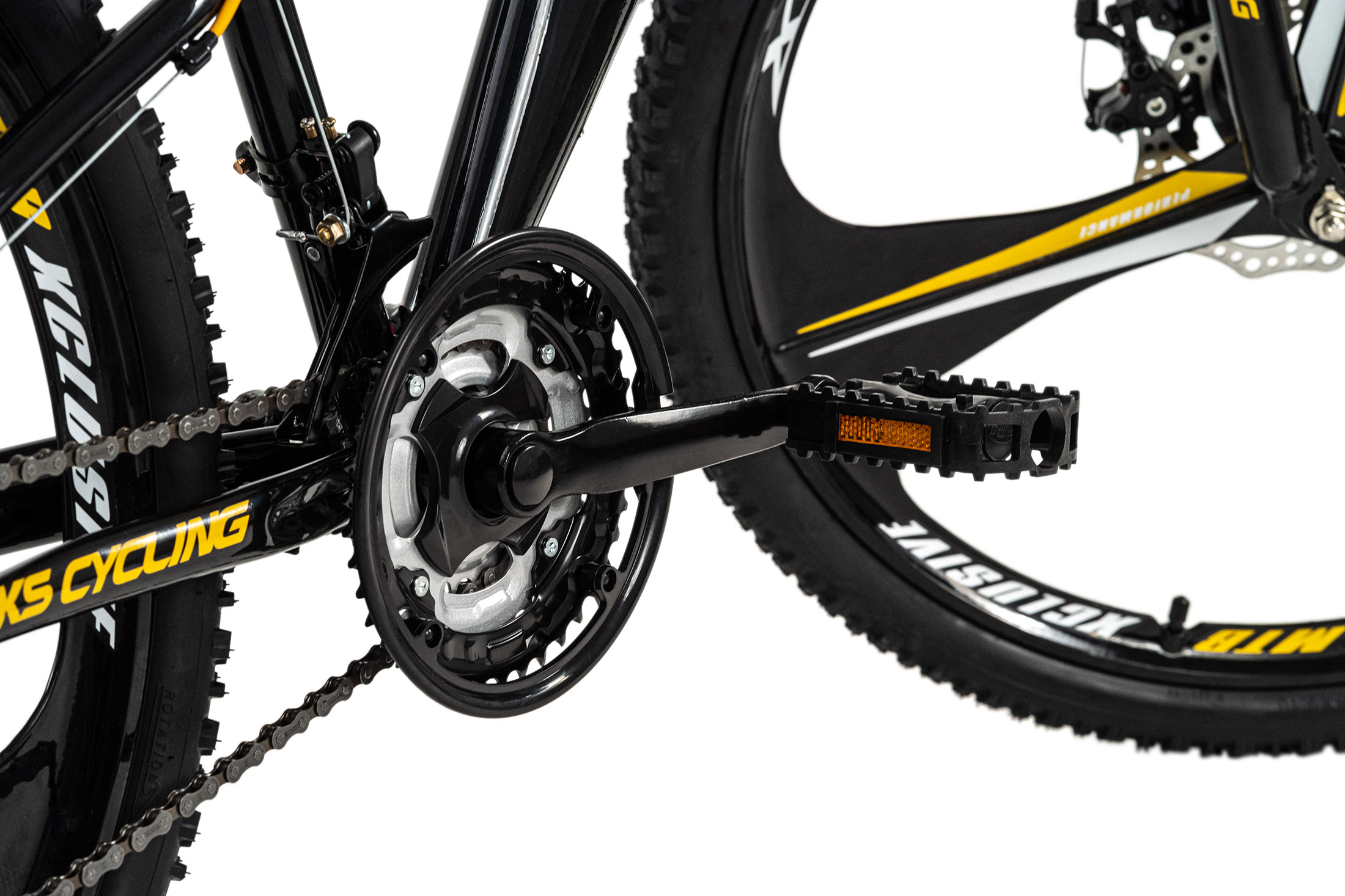 Pédalier: acier, 3 plateaux (42-34-24 dents) et anneau de protection