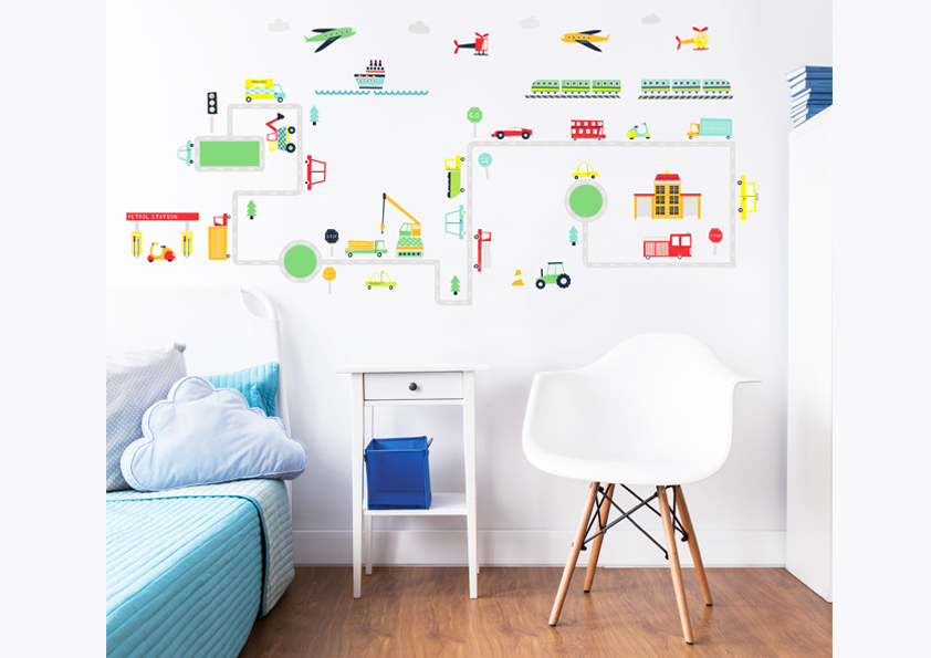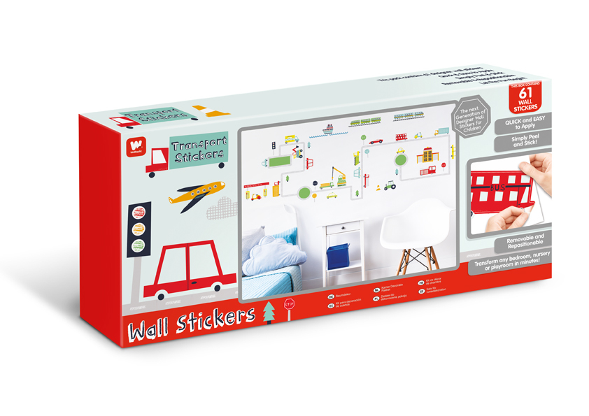 Walltastic 44869. Adhésifs par paquet: 61 pièce(s). Thème: Transport, Facile à appliquer, Réutilisable, Couleur du produit: Multicolore