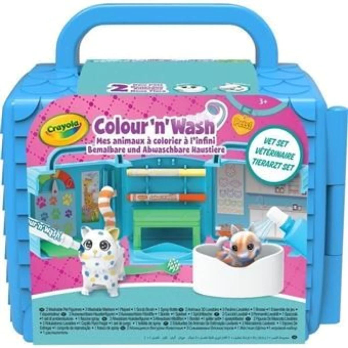 Un kit à emporter partout, très pratique. Contient : 2 Nouveaux animaux, 3 Feutres lavables, 1 Brosse, 1 Vaporisateur. Dès 3