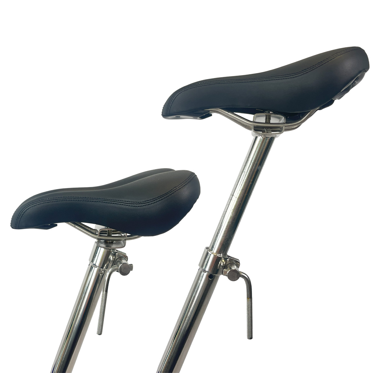 Le guidon et la selle réglables en hauteur permettent d'adapter le vélo aux mensurations de chacun.