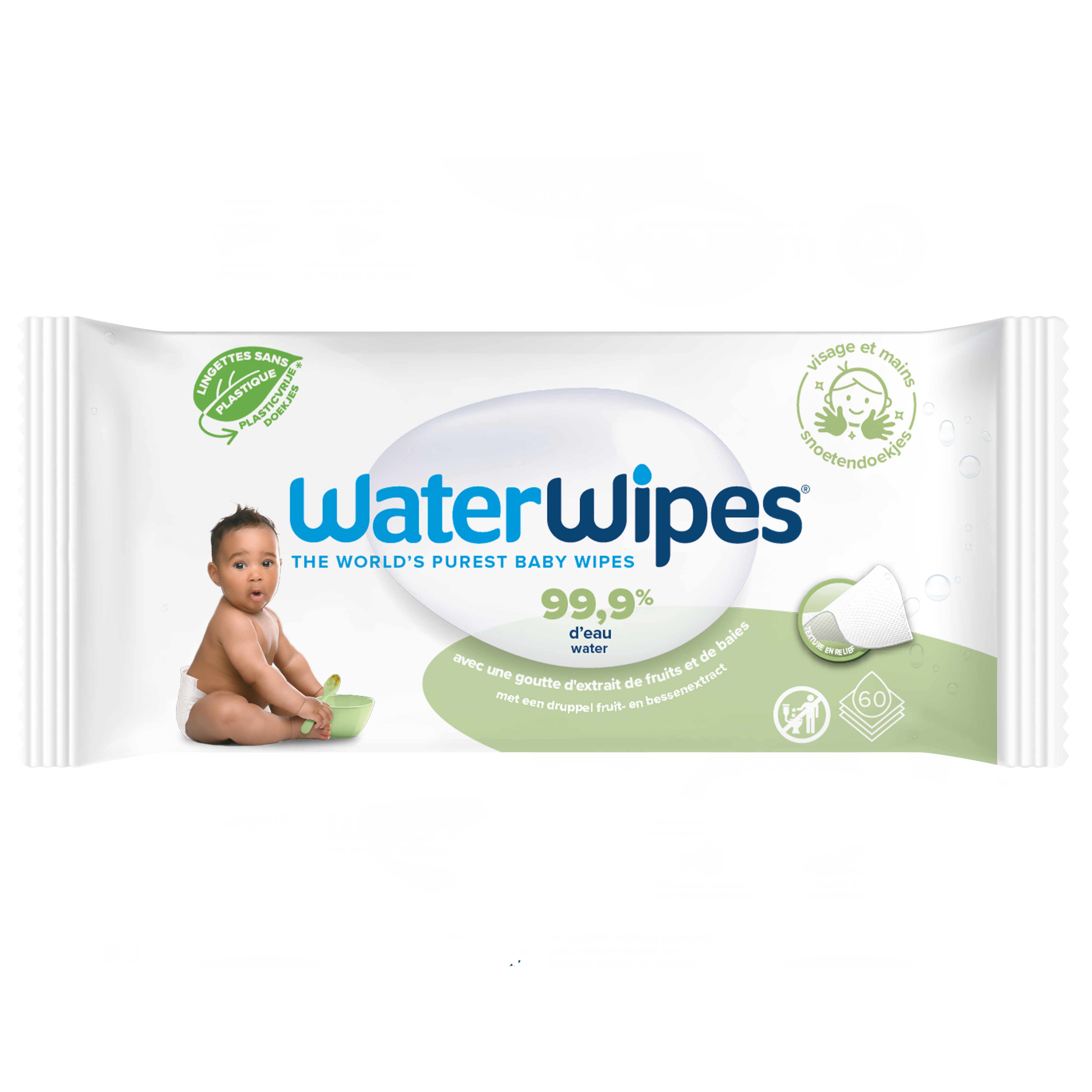 Lingettes à l'eau pour bébés, composées de seulement deux ingrédients : 99,9 % d'eau et une goutte d'extrait de fruit. Les lingettes WaterWipes, les plus pures au monde, nettoient en douceur et aident à protéger les peaux sensibles. Elles sont idéales pour la peau délicate des nouveau-nés et conviennent également aux bébés prématurés. Plus pures que le coton et l'eau, elles sont distinguées par l'Association Francaise pour la Prévention des Allergies. D'origine végétale et compostables.
