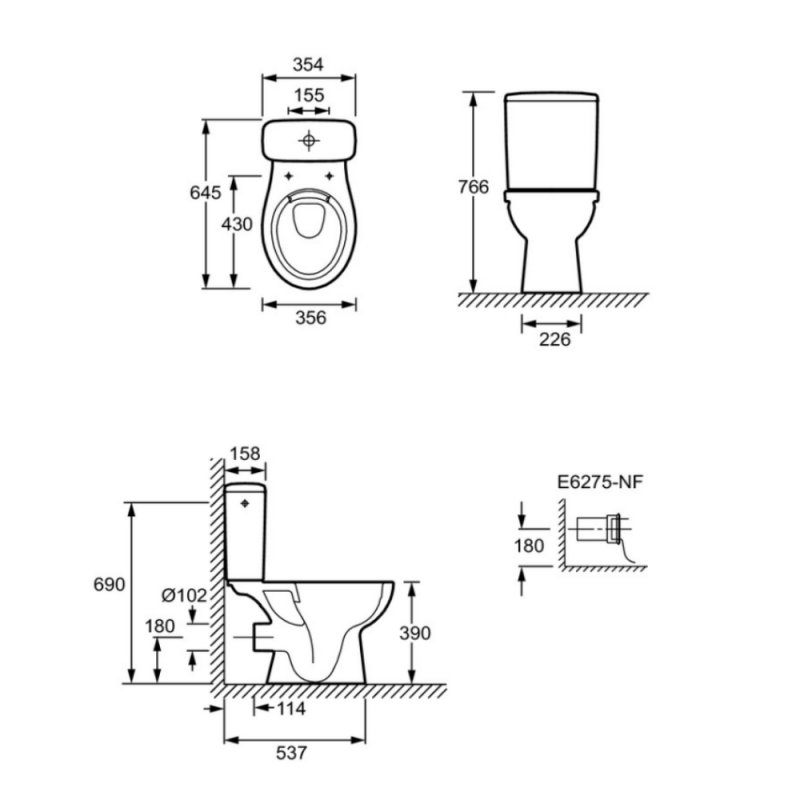 Caractéristiques techniques du réservoir WC JACOB DELAFON Patio :