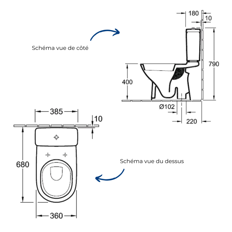 Caractéristiques de la cuvette WC à poser sortie verticale Villeroy & Boch