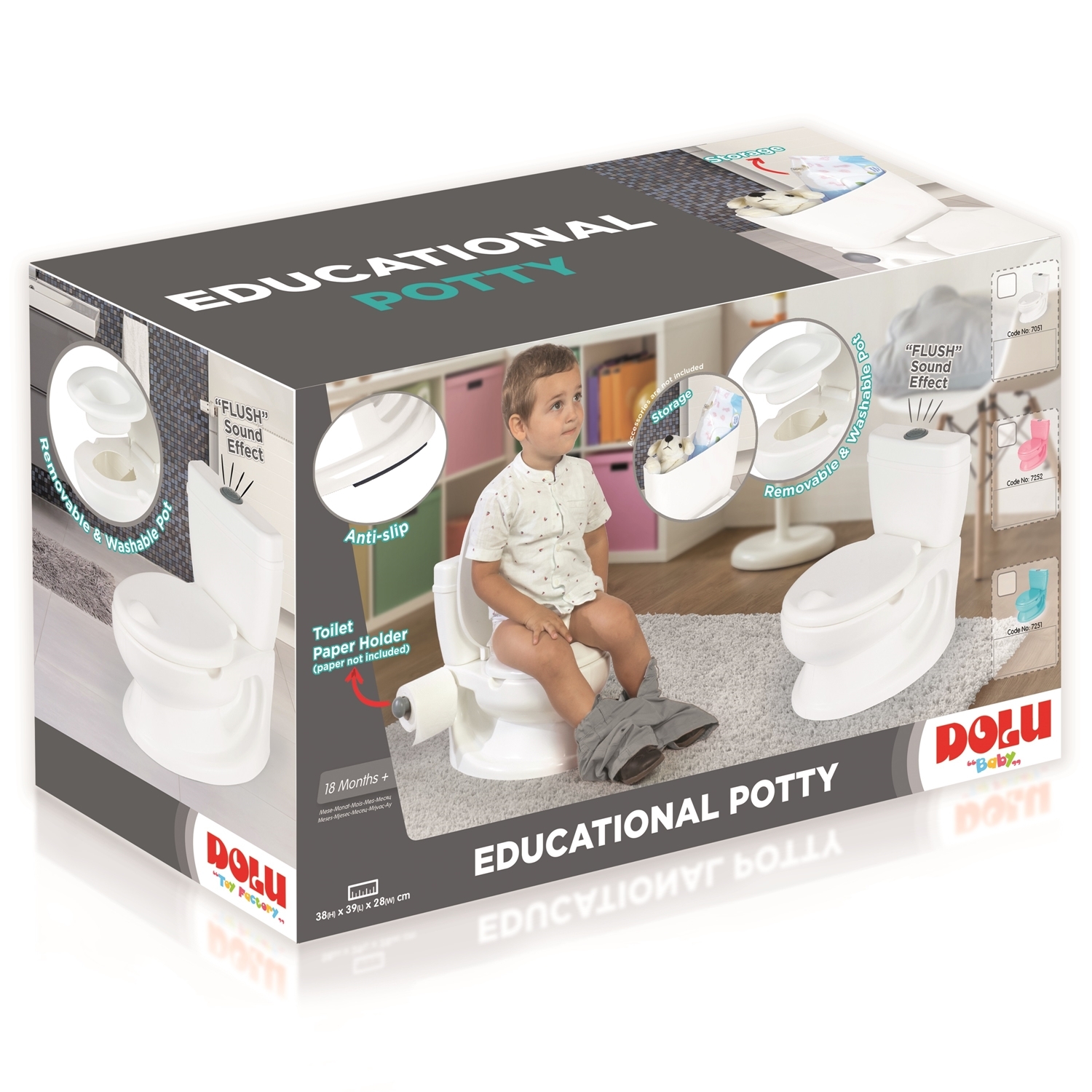 Dolu 7051 WC d'apprentissage Potty - - Un mignon petit WC d'apprentissage avec des effets sympas - Ici, les petits sont récompensés pour chaque passage avec des effets sonores et lumineux. - - Cette reproduction fidèle d'un WC pour adultes est une excellente option pour les petits qui veulent déjà aller aux vraies toilettes quand ils sont grands. - - Détails : - - - Pot d'apprentissage - Avec effets sonores et lumineux - Antidérapant - Pot amovible & lavable - Matériau robuste sans bords tranchants - Pour les enfants à partir de 18 mois