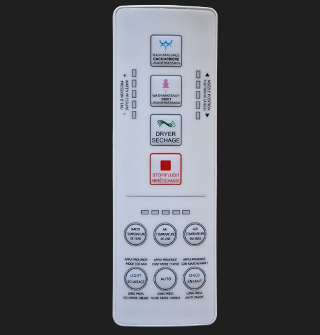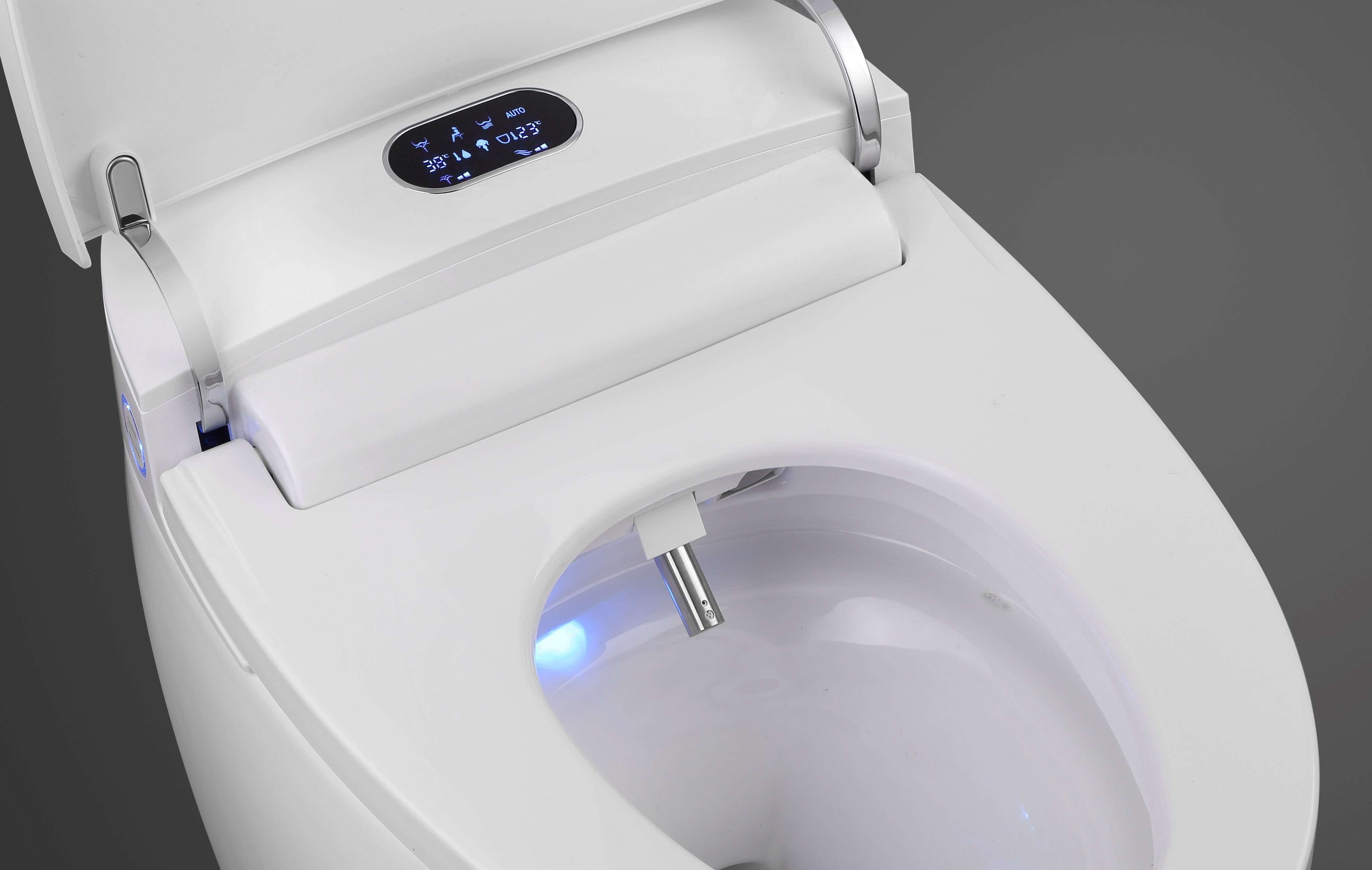 Le nouveau WC lavant Monobloc TopToilet Diamond PLUS est un WC japonais équipé d’un capteur à induction permettant l’ouverture/fermeture automatique du couvercle et du siège pour une hygiène exemplaire. Il dispose d’une télécommande à radiofréquence ainsi que d’une connectivité Bluetooth qui vous permettra de gérer aisément ses nombreuses fonctions sur votre smartphone via l’application TopToilet. Sa chasse d’eau automatique possède une technologie par électrovannes qui offre un rinçage complet de la cuvette en trois étapes de lavage dont un jet de fond de cuve. Les différents réglages de température, de puissance de lavage et du positionnement de la buse vous apporteront un confort inédit et s’adapteront aux préférences de toute la famille. Une arrivée d’eau en 14 mm de diamètre intérieur, une évacuation horizontale ou verticale et une prise électrique à proximité sont indispensables pour l’installation.