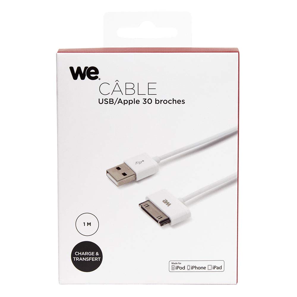 | Libellé | WE Câble USB Compatible Ancien iPhone 4 4s, iPhone 3G 3GS, iPad 1 2 3, iPod, 1m - Blanc |
