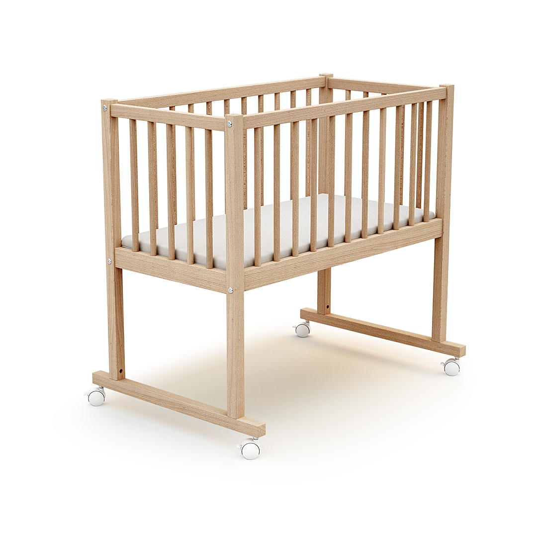 Un petit berceau en bois parfait pour les nouveau-nés Accueillez votre petit chou pour ses premières nuits avec le berceau à roulettes ESSENTIEL de AT4 ! Ses petites dimensions, ses roulettes et son matelas inclus font de ce petit berceau en bois, le lit bébé parfait pour des nouveaux parents. Idéal pour des petites chambres comme pour la chambre des parents, votre bébé va pouvoir dormir sereinement. Le berceau ESSENTIEL pour des nuits en douceur Ce berceau en bois ESSENTIEL vous simplifiera l'arrivée de votre petit nouveau-né. Équipé de 4 roulettes multidirectionnelles à frein, vous pourrez déplacer le berceau d'une chambre à l'autre selon les besoins sans réveiller votre bébé. Ce petit berceau est également muni d'un matelas 40 x 80 x 4 cm et d'un sommier en panneau de fibre pour que votre bébé s'endorme rapidement. D'une grande solidité, la structure du berceau est en hêtre massif. Léger mais robuste, il est durable pour les premiers mois de bébé. Dimensions du lit (L x l x H) : 86 x 58,5 x 80 cm Poids : 10 kg Couleurs disponibles : hêtre brut ou blanc Matières : structure bois massif, sommier en panneaux de haute densité Garantie : 2 ans Matelas 40 x 80 x 5 cm INCLUS Conforme à la norme : EN-1130 : 2019 Livré à monter soi-même