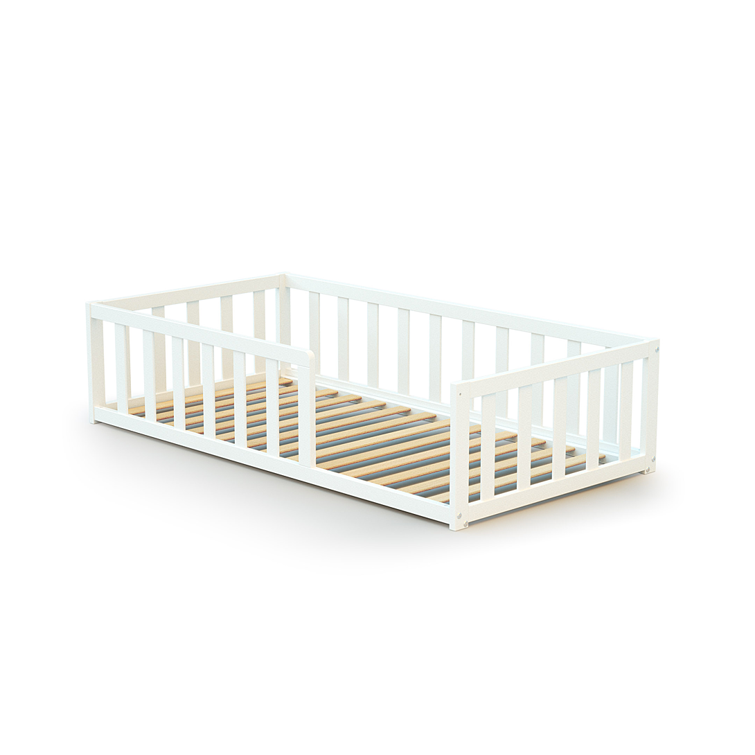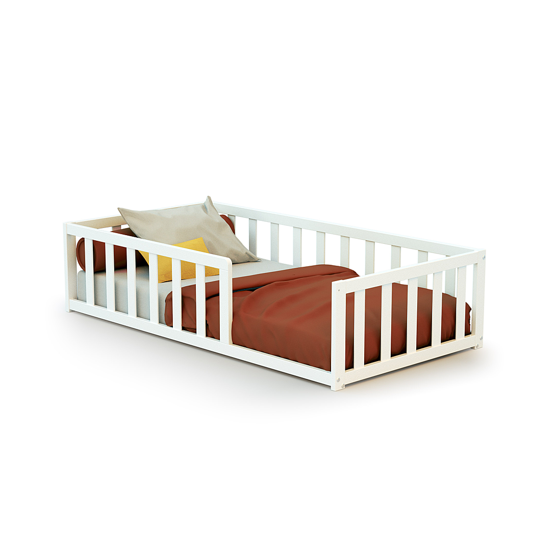 Lit au sol sécurisé pour enfant Avec ses petites barrières tout autour, ce beau lit enfant au sol est parfait pour que votre tout petit découvre les joies de l'autonomie et de la liberté en toute sécurité. Un design esthétique et doux qui vient parfaire la décoration dans la chambre de l'enfant. Un joli petit lit enfant sécurisé pour des nuits apaisées Sommier à lattes pour une meilleure ventilation du matelas et un confort de sommeil optimal. Dimensions du lit : 144 x 75 x 35 cm Poids : 12 kg Matières : bois massif Garantie : 2 ans Nécessite un matelas 70 x 140 cm d’une hauteur maxi de 12 cm NON INCLUS Conforme à la norme : NF D 60 300-4 Livré en kit à monter soi-même